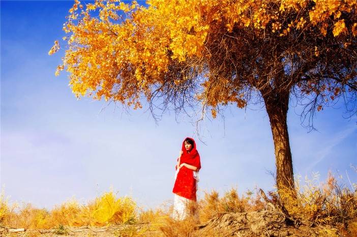 走在这秋的胡杨树下,对金黄凝眸,与清风细语,倾听这千年的故事.