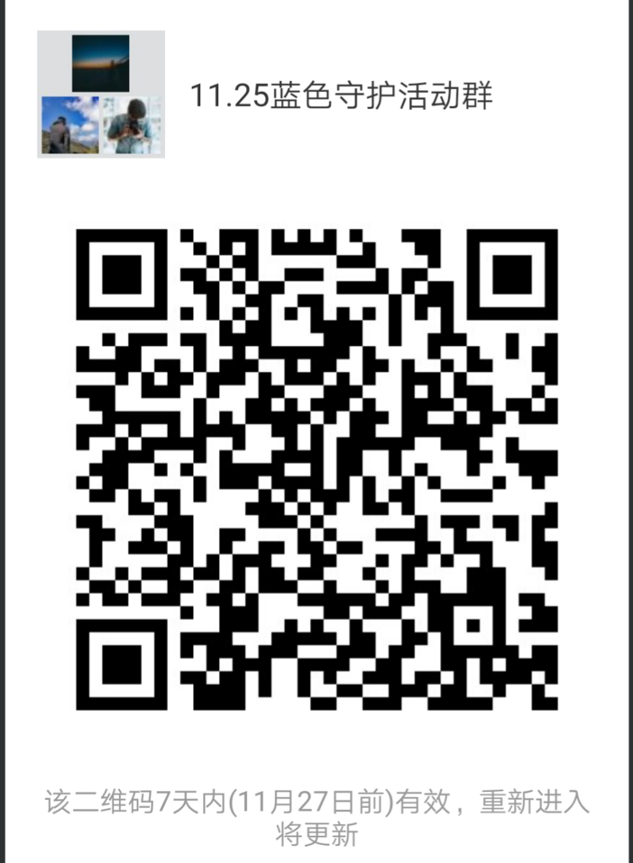 感谢无私奉献的蓝色守护者们.已经确定名单的队员扫描进11月25日活动群