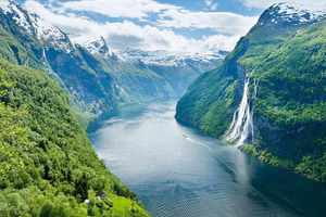 挪威南北狭长的山地国家,斯堪的纳维亚山脉纵贯全境,高原、山地、冰川约占全境2/3以上。其海岸线长2.1万公里(包括峡湾),海岸线极其蜿蜒曲折,构成了挪威特有的峡湾景色。有些峡湾长达两百多公里,最深处达一千三百公尺,有些地方垂直之山壁自海平面忽然升起达千公尺,大自然的鬼斧神工令人惊叹,这些迷人的绝世风光吸引着世界各地的徒步爱好者,这些美丽的峡湾被美《国家地理》杂志评为“世界未受破坏的自然美景之首”。