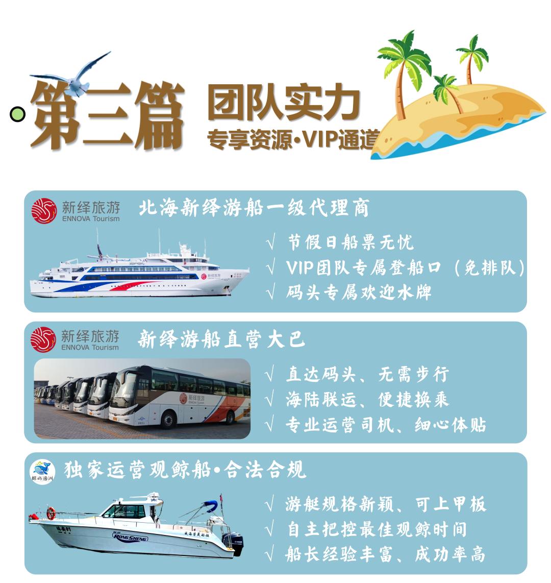 1、涠洲岛1次出海寻鲸费用(寻鲸为自然概率事件,不能确保100%能寻鲸成功;根据海况确定出海时间,如遇天气不允许出海,平日退还寻鲸费用280元/人,春节假期退还寻鲸费用380元/人);