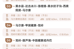 2025年【活动批次】,每周二/周六固定发团 第01期:09月13日(集合日)-09月18日(散团日) 第02期:09月16日(集合日)-09月21日(散团日) 第03期:09月20日(集合日)-09月25日(散团日) 第04期:09月23日(集合日)-9月28日(散团日) 第05期:09月27日(集合日)-10月02日(散团日)跨国庆 第06期:10月01日(集合日)-10月06日(散团日)国庆节(升级摄影领队) 第07期:10月02日(集合日)-10月07日(散团日)国庆节 第08期:10月03日(集合日)-10月08日(散团日)国庆节 第09期:10月11日(集合日)-10月16日(散团日) 第10期:10月14日(集合日)-10月19日(散团日)(升级摄影领队) 第11期:10月18日(集合日)-10月23日(散团日) 第12期:10月21日(集合日)-10月26日(散团日)特价2980 第13期:10月25日(集合日)-10月30日(散团日)(升级摄影领队) 第14期:10月28日(集合日)-11月02日(散团日) 第15期:11月01日(集合日)-11月06日(散团日) 第16期:11月04日(集合日)-11月09日(散团日)(升级摄影领队) 第17期:11月08日(集合日)-11月13日(散团日) 第18期:11月11日(集合日)-11月16日(散团日) 第19期:11月15日(集合日)-11月20日(散团日)(升级摄影领队) 第20期:11月18日(集合日)-11月23日(散团日) 第21期:11月22日(集合日)-11月27日(散团日) 日常价格:成人3580元/人;儿童2430元/人;单房差880元 国庆节价格:成人3980元/人;儿童2830元/人;单房差1280元 |