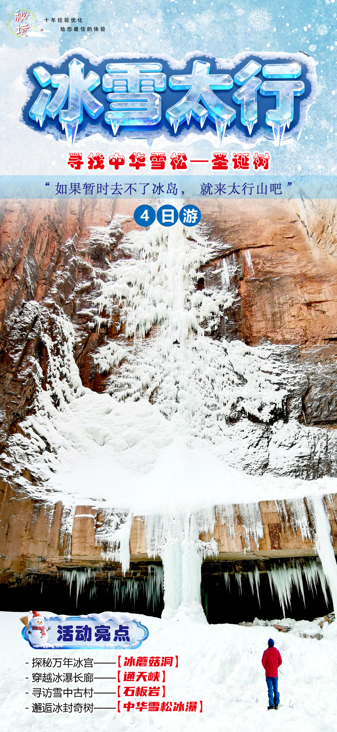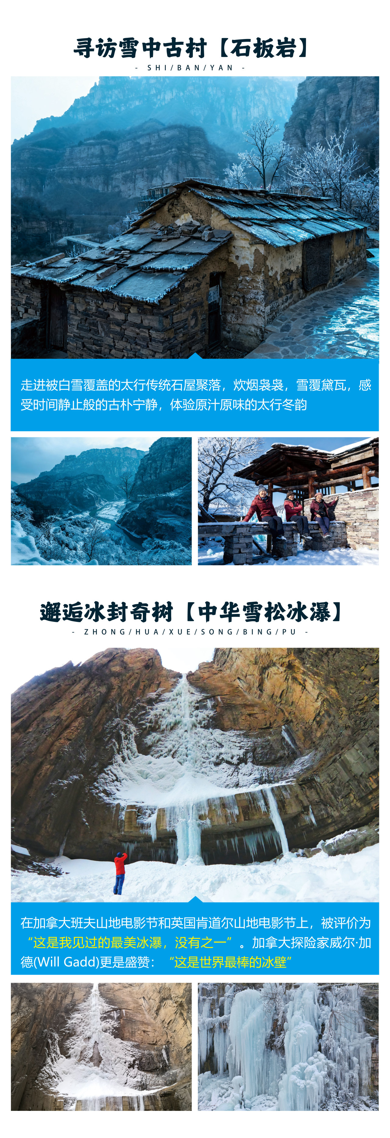 早餐后,出发探访太行山冬季限定的自然奇观——【冰蘑菇洞】。她是由山泉漫流、滴水穿石,在特定地貌与严寒气候下共同雕琢出的地质杰作。