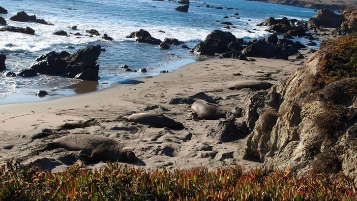 2. 半月湾以南的阿诺努耶佛州立公园是鳍足类动物保护区,是看象海豹最好的地方。选一个风和日丽的时间拜访,凝视一小会儿海豹午睡时可爱的模样,伴随周围自由翱翔的海鸥,所有路途的疲惫都消失不见。