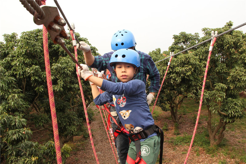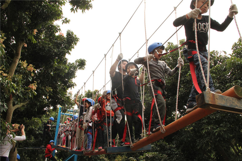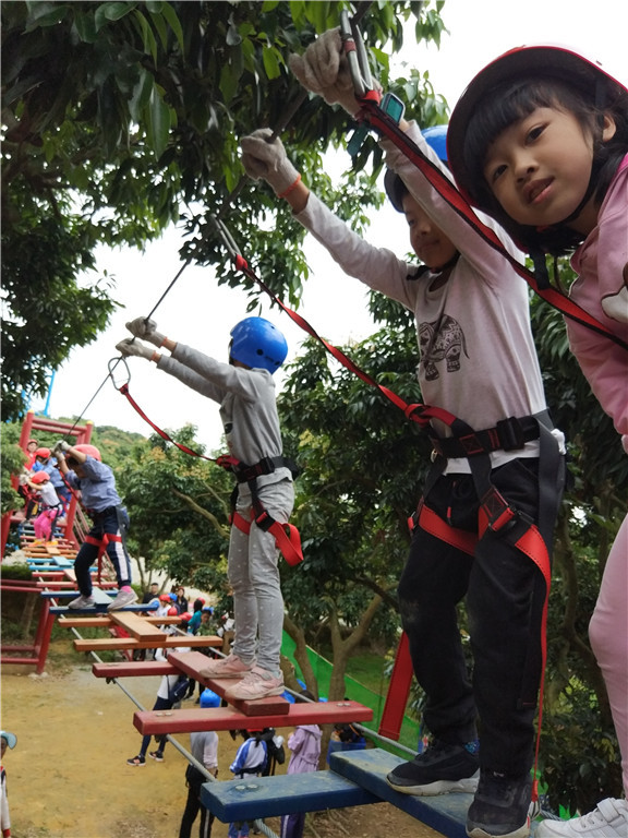 丛林穿越,小朋友们勇敢的挑战了自己。