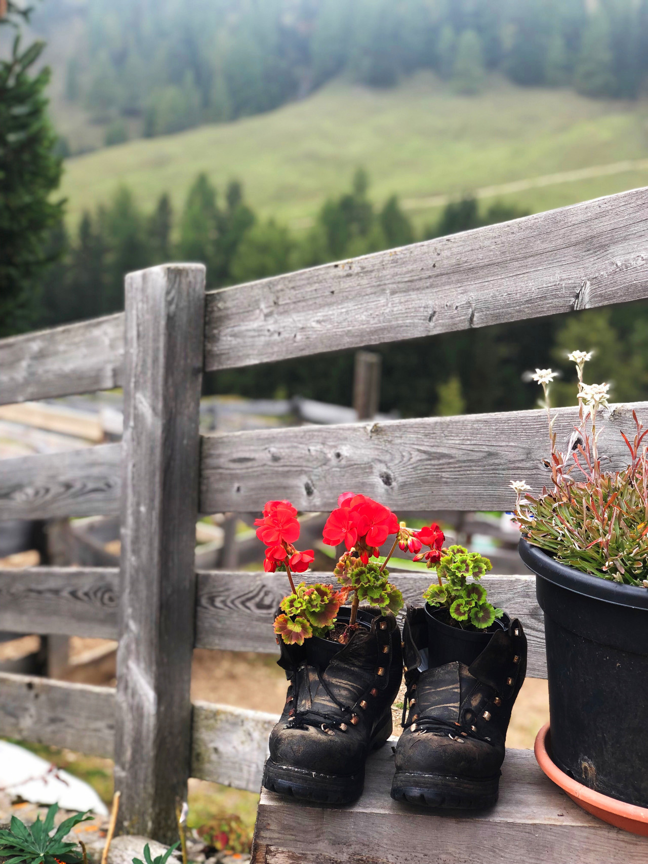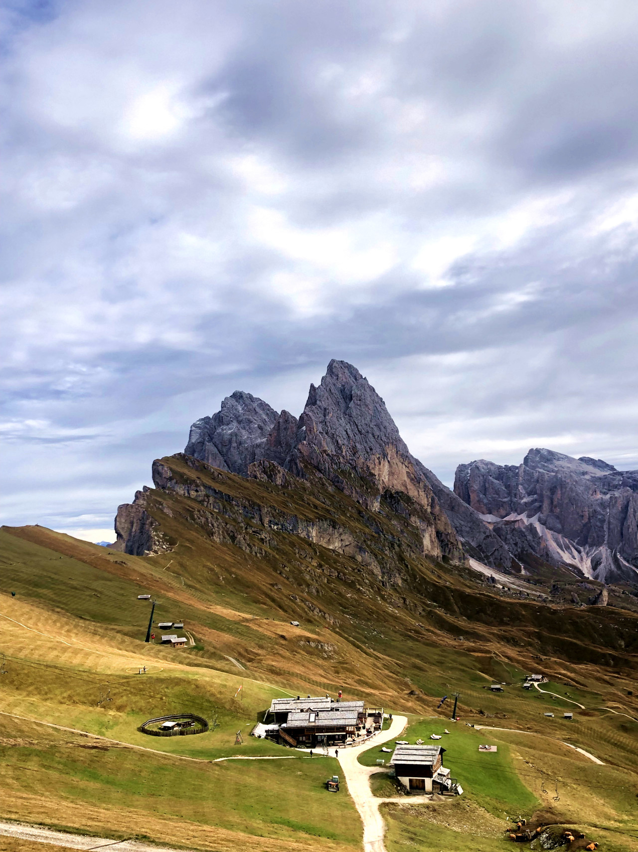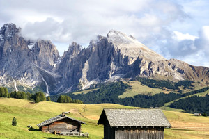 这里全欧最大阿尔卑斯山的高山草原。很少有地方能像休斯山这样拥有如此此起彼伏的绿色牧场,奇特美丽的风景一直绵延到高耸的希利亚尔(Sciliar)群山脚下。东南部参差不齐的卡蒂纳乔群山在德语里被称作”Rosengarten(玫瑰园)” ,准确地形容了日落时分山上的白云灰岩,在夕阳照射下变成奇特的粉红色,如同玫瑰花园一般。如果说富内斯美的温婉动人,深闺无人识,晨曦落日,群山无声;在草甸上静坐,不愿再作过客,从此便为归人。休斯山则美得巍峨开阔。