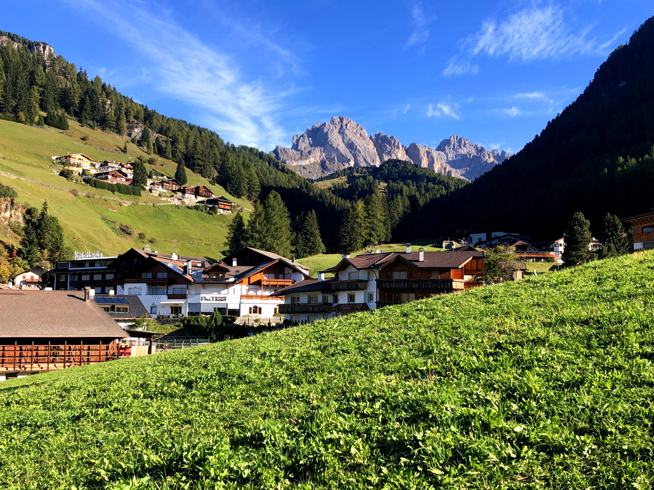 富内斯山谷在绵延数英里未被破坏的森林和天鹅绒般绿色的斜坡中缓缓展开,直到遇见令人瞠目结舌的多洛米蒂山而戛然而止。当奥德尔山峰的尖牙第一次出现在视野中时,它是刺目的,有些山看起来好像要亲吻天空,而有些山看起来好像要向远方奔去。