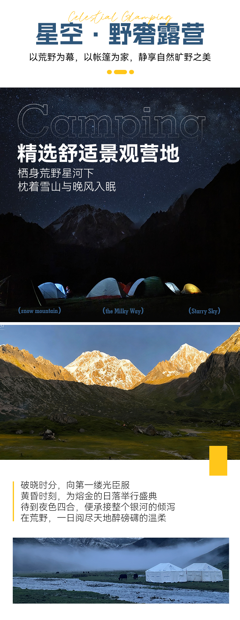冬季的高原白天往往都是大晴天,艳阳高照,你感受到更多的是苍茫,黄灿灿的草原,看到雪山的机率很高,夜晚还能看到灿烂的星河。 |