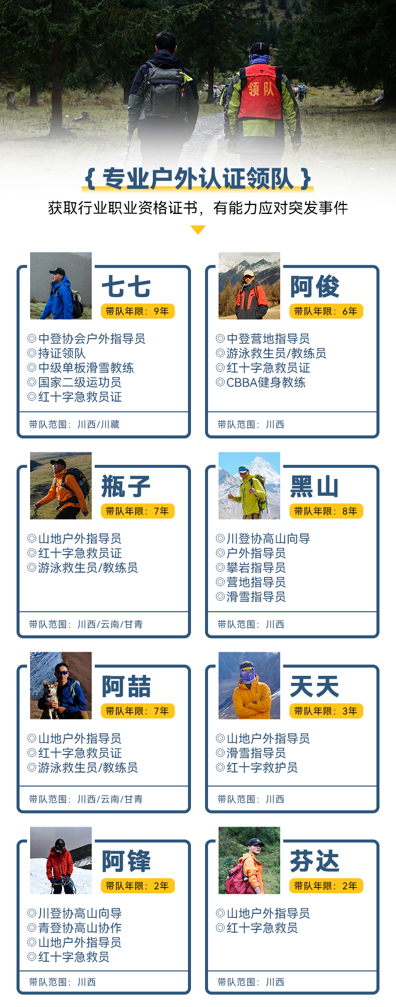 ● 专业户外工作人员,领协比1:8。