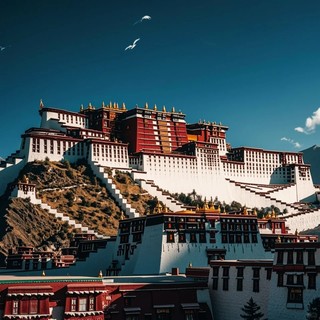 它被誉为世界十大土木建筑之一。是641年吐蕃首领松赞干布为迎娶大唐文成公主所建。布达拉宫分白宫和红宫,白宫是达赖喇嘛生活起居和政治活动的地方;红宫是历代达赖喇嘛的灵塔和各类佛殿。游走于金碧辉煌的佛殿、灵塔、寝宫、回廊之间,灯光渺渺,窗帏低垂,酥油的味道四处弥漫。整个好像落入了一个晦暗古老的梦境。
