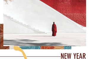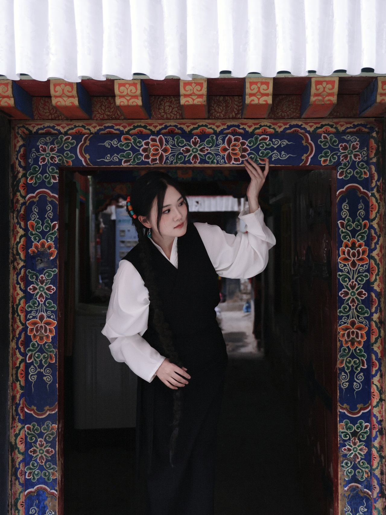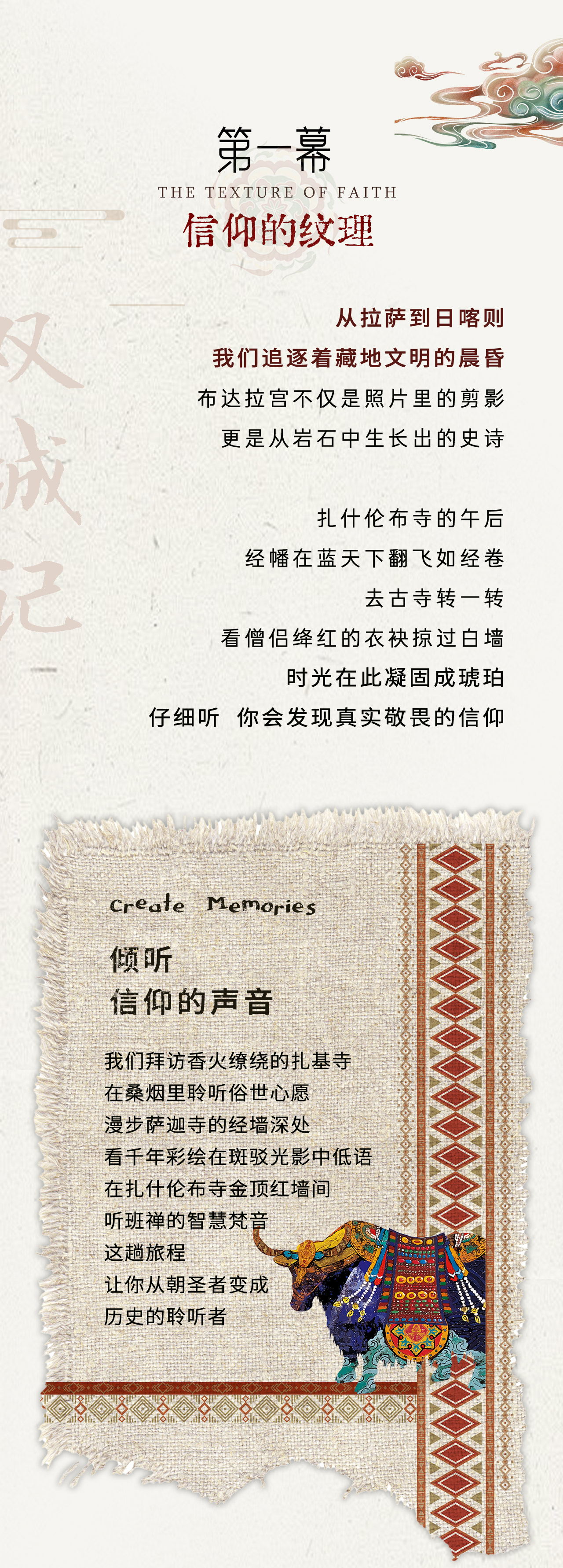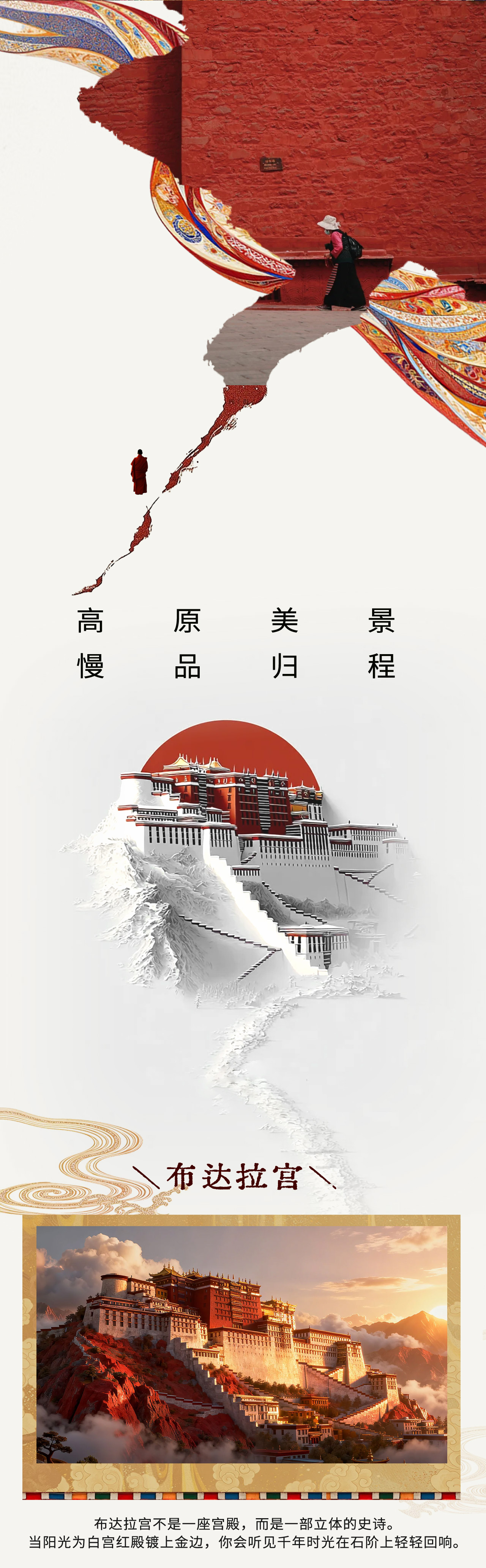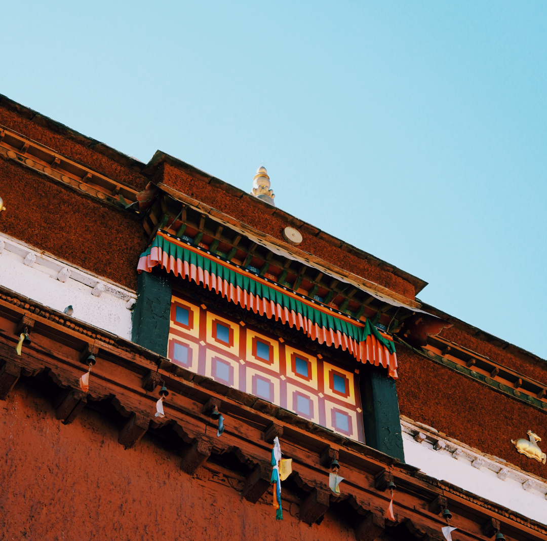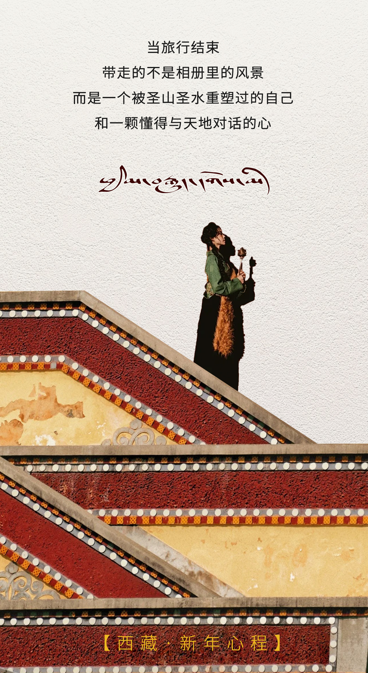风马旗在凛冽寒风中舞动 似在低吟古老的祝祷;寺庙的金顶映着晨曦 喇嘛的诵经声穿越街巷,唤醒沉睡的大地