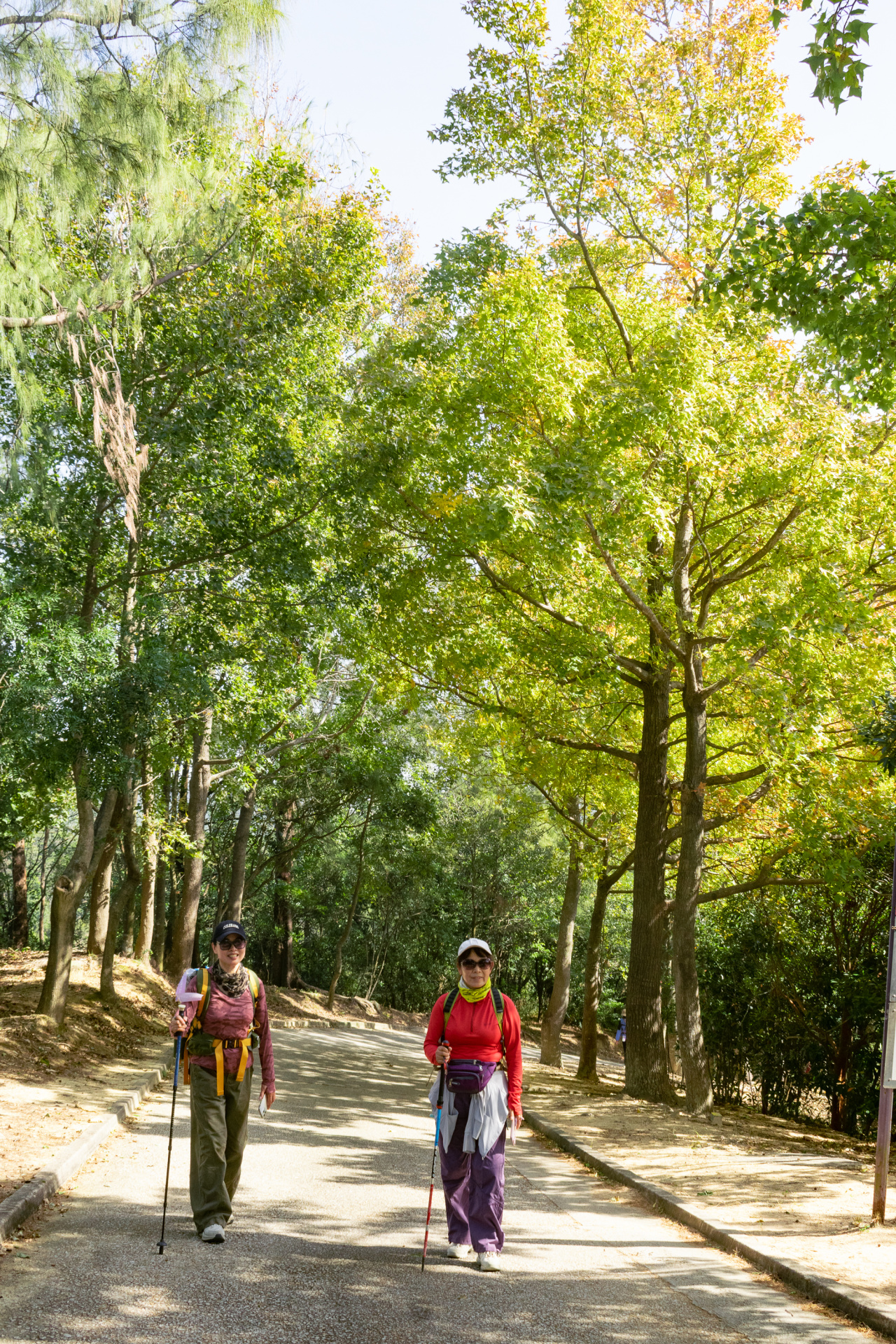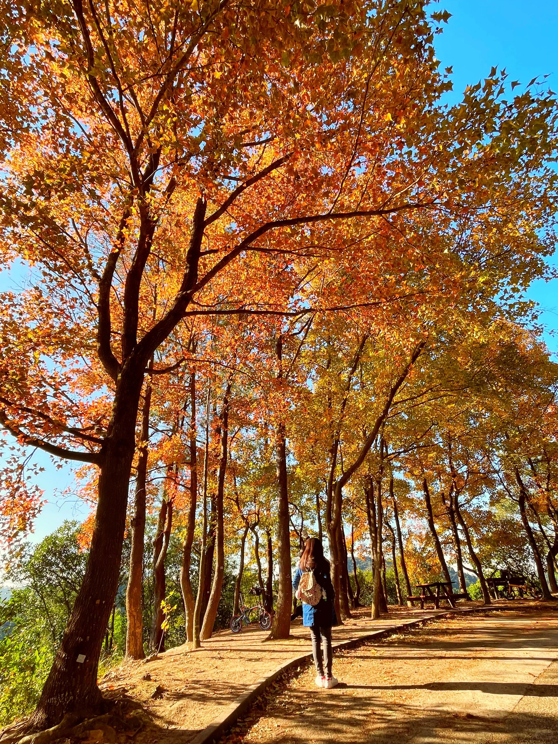 香港元朗大棠的枫香林可以说我们每年秋天必游的景点。这条长长的马路两边有很密集的枫树林,深秋时分,整条马路都变得红红黄黄的,像是走进了美丽的童话世界!