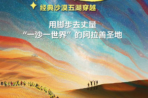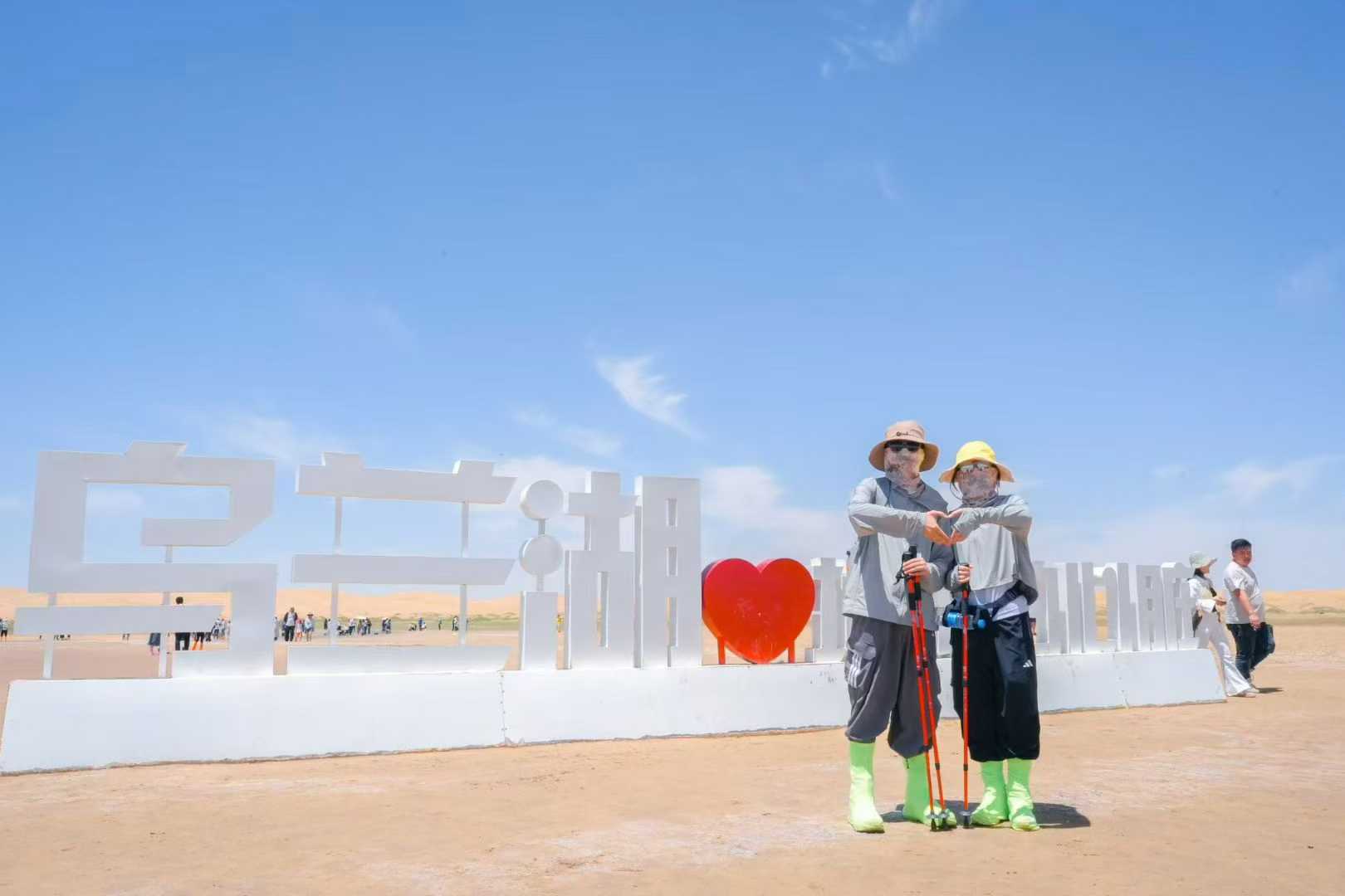 今日沿途可远眺月亮湖(不进入湖内),碧绿湖水、漫漫黄沙、蔚蓝天空在这里交织成一个美妙的画卷,继续行走10公里到达终点! 领队在终点为大家颁发奖牌,集沙瓶,合影留念;午餐过后,大家一起返回银川解散。