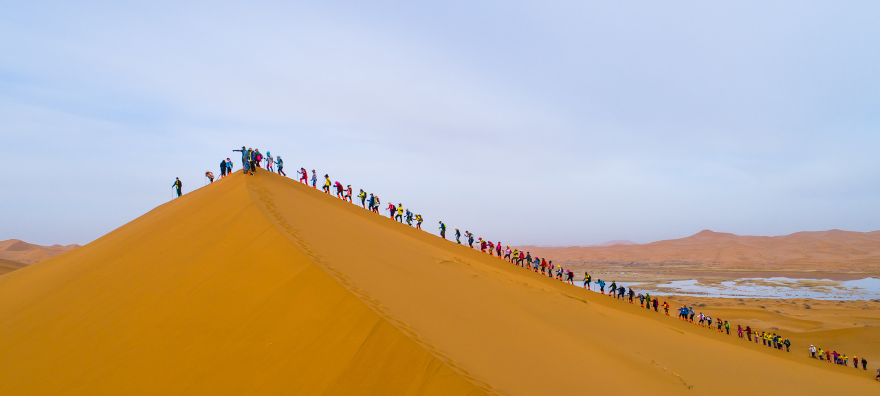 早餐后整理行装,于酒店集合出发,乘车前往阿拉善左旗腾格里沙漠,车程约2.5小时,正式开启本次沙漠徒步之旅。