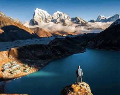 行程概览:上午自愿原则,有兴趣的可去徒步第四、第五湖,中午左右返回,也可以在第三湖附近转转,或者发呆,欣赏风景。Gokyo村吃午饭,下午我们出发前往EBC最重要一个观景平台Gokyo Ri,在Gokyo-Ri可以观赏到【卓奥友、珠峰、马卡鲁、洛子峰】,非常壮观!大约2小时左右到达山顶,这里是四大8000米雪山全景最佳观察点,我们等待日落,天气晴好我们可以看到非常壮观的日落,之后我们下山返回住宿地,大约1.5小时到达村子。徒步需要4小时。