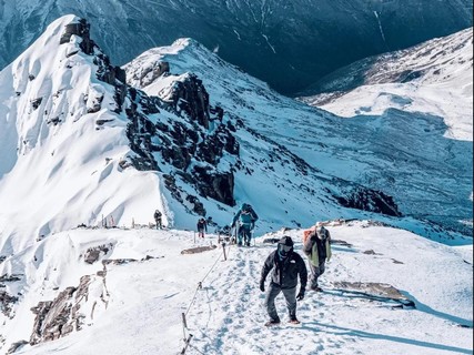 行程概览:今日凌晨03:00起床,提前准备好冲顶的头灯、饮用水等装备,吃完早餐后04:00点准时出发(夏季可能会早点出发,冲顶之后可以看日出),一路上行翻越大峰垭口沿着铁索开始登顶,登顶后拍照留念,欣赏壮阔无比的云海、日出、佛光后安全下撤到到大峰营地,简短休息调整后收拾整理个人物品,将下山途中用不上的物品打包好交给向导提前运输下山,当然如果不想徒步下山也可选择骑马,需提前与当地向导沟通,全员安全抵达四姑娘山镇后乘车返回成都,大家可以在成都自由约饭,庆祝登顶的喜悦,分享过程中的辛酸得失。