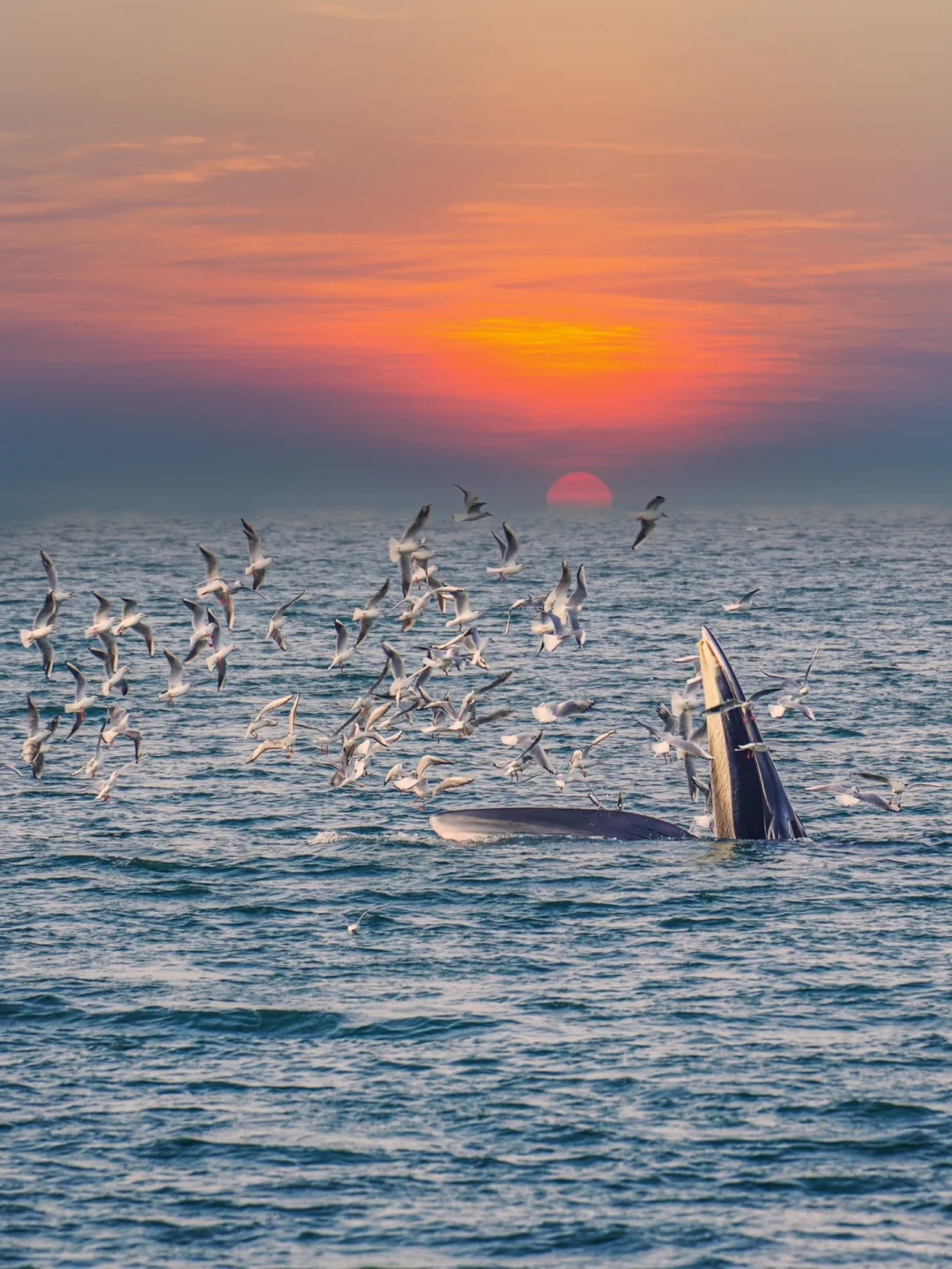 15:30 前往南湾海洋运动基地,乘坐游艇出海寻鲸,欣赏壮丽日落;