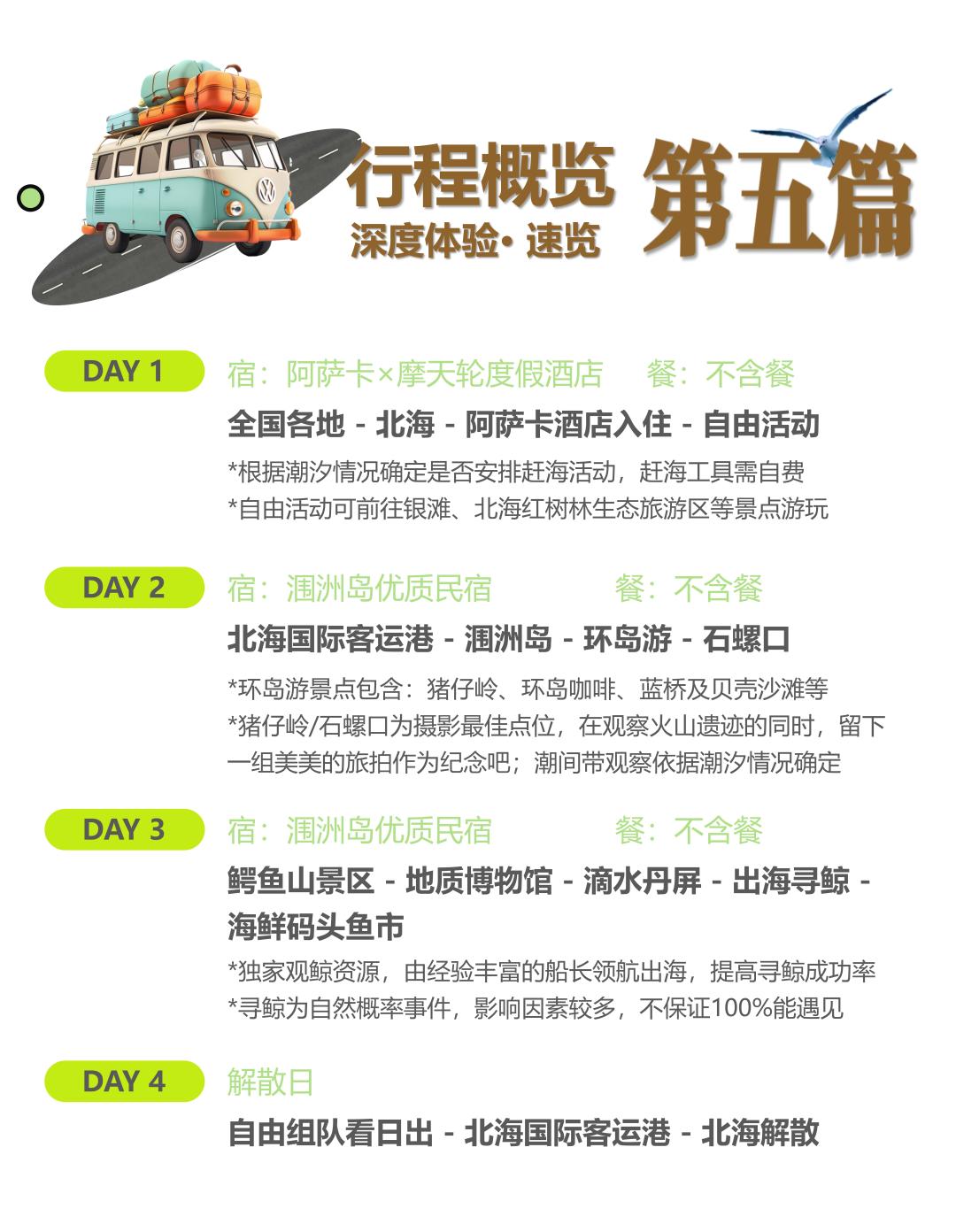 1.涠洲岛经常受大风影响导致停航,出发前2天如接到通知不能上岛,报名团费全部退回,不作赔偿,敬请理解!