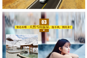 喜欢温泉的团友们可以结伴感受下【大柴旦雪山温泉】,你一定泡过温泉,但是离夜幕下的星辰最近的雪山温泉也一定不要错过哟。