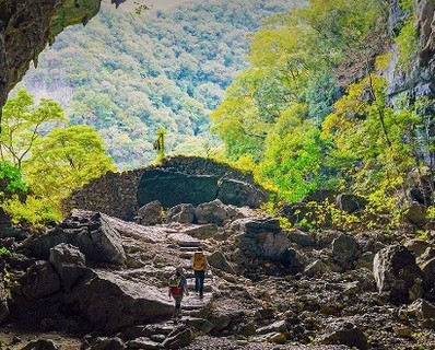 早餐后穿越喀斯特地貌的典型景观-四洞天,行走一段“黔桂古道”之后进入原始的洞穴里穿越,溶洞内钟乳石奇异,光影绰约;林深处植被繁茂,日光斑驳,鸟鸣悦耳。一路仿若与自然对话,尘世烦忧皆抛。