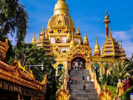 16:00 前往【傣族古镇】,接下来就把时间留给自己,留给芒市这座慢节奏的小城,整个芒市,充满着异域风情,傣族风格的黄色琉璃瓦建筑,热带行道树棕榈树林立,随处可见的寺庙及佛塔,仿佛来到了东南亚。