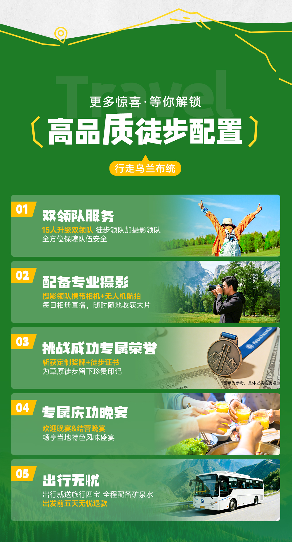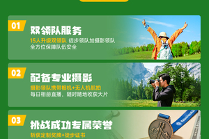 7、摄影:15人及以上增加一名摄影领队随团拍摄,具备单反相机、无人机、相册直播;
