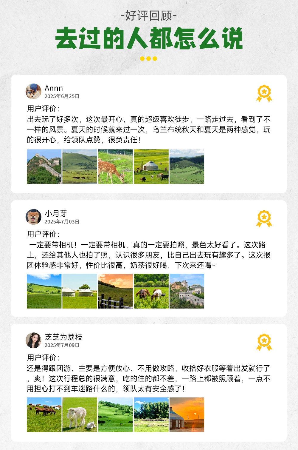 中午在景区附近自由午餐或领队组织AA吃饭,下午集合返京(车程约2.5小时)。非常幸运和大家共享草原之旅,期待我们的下次相遇。