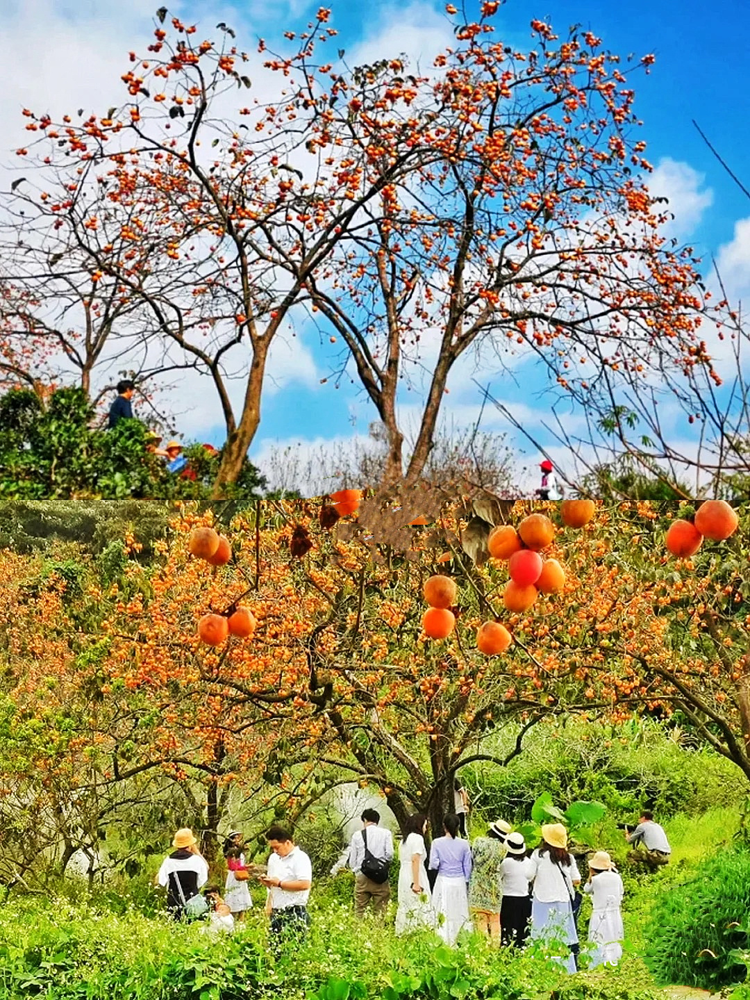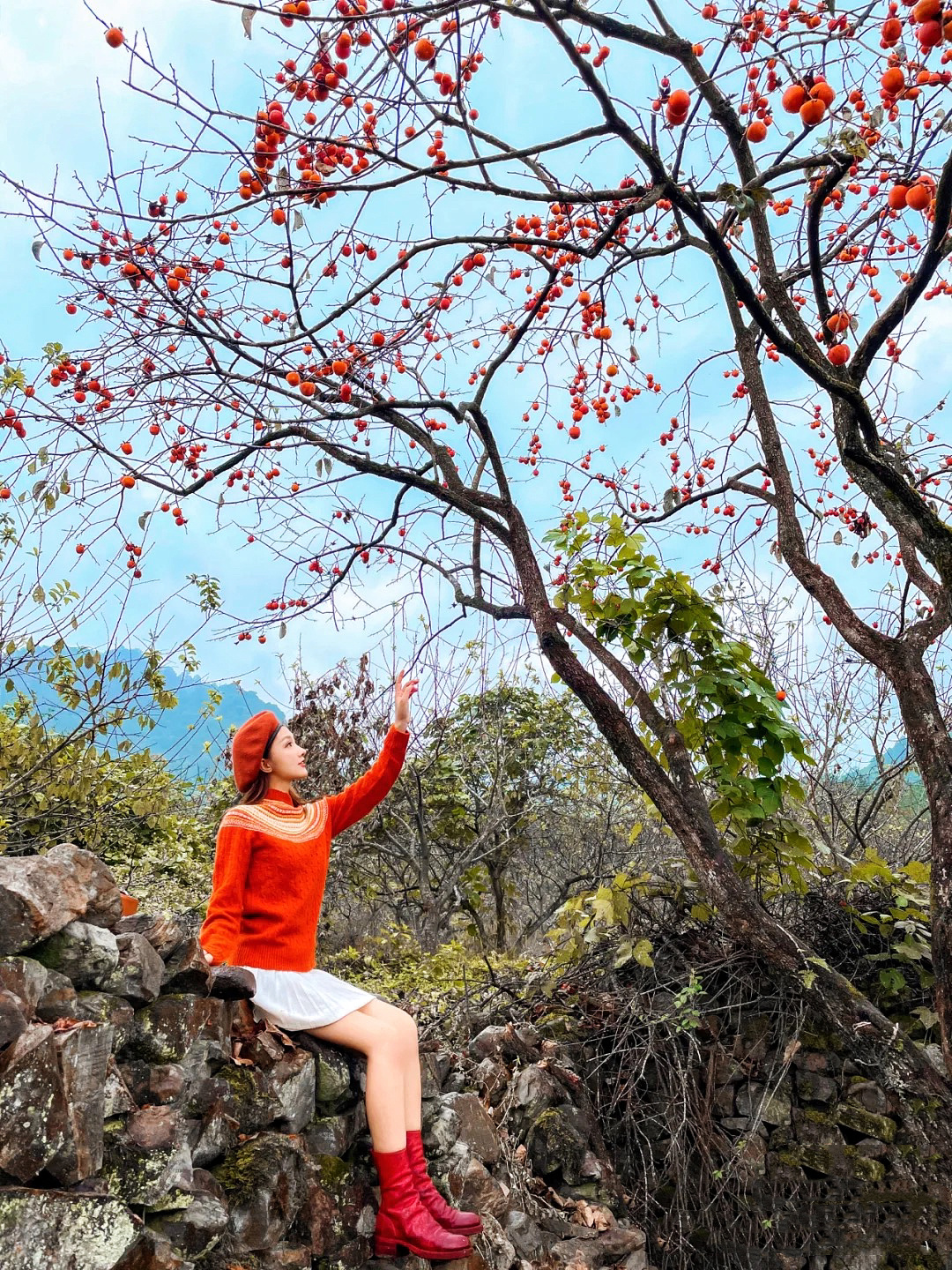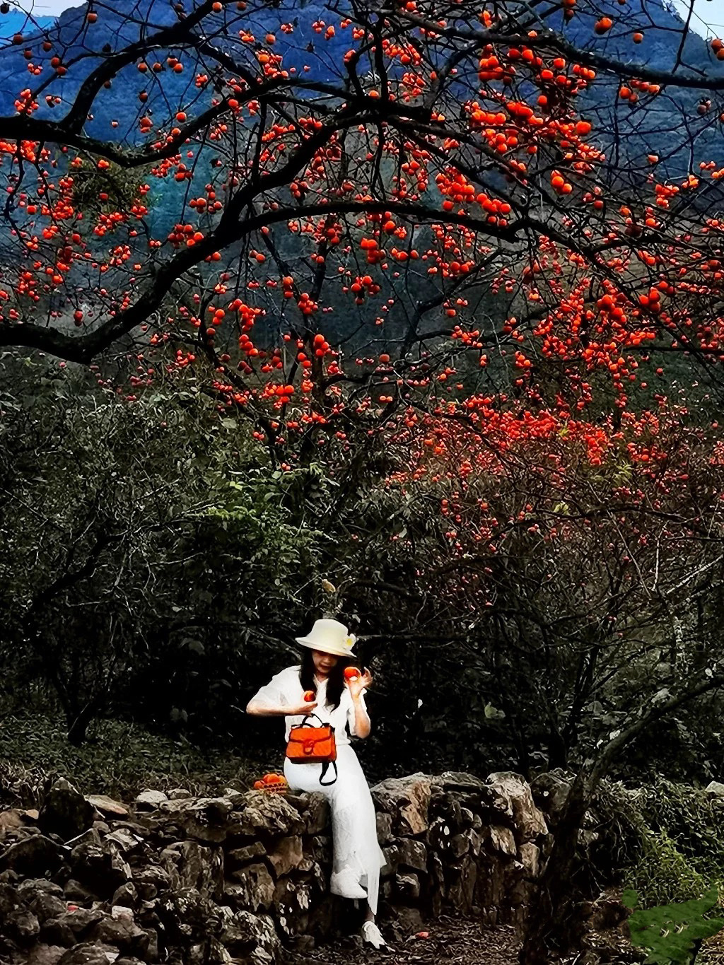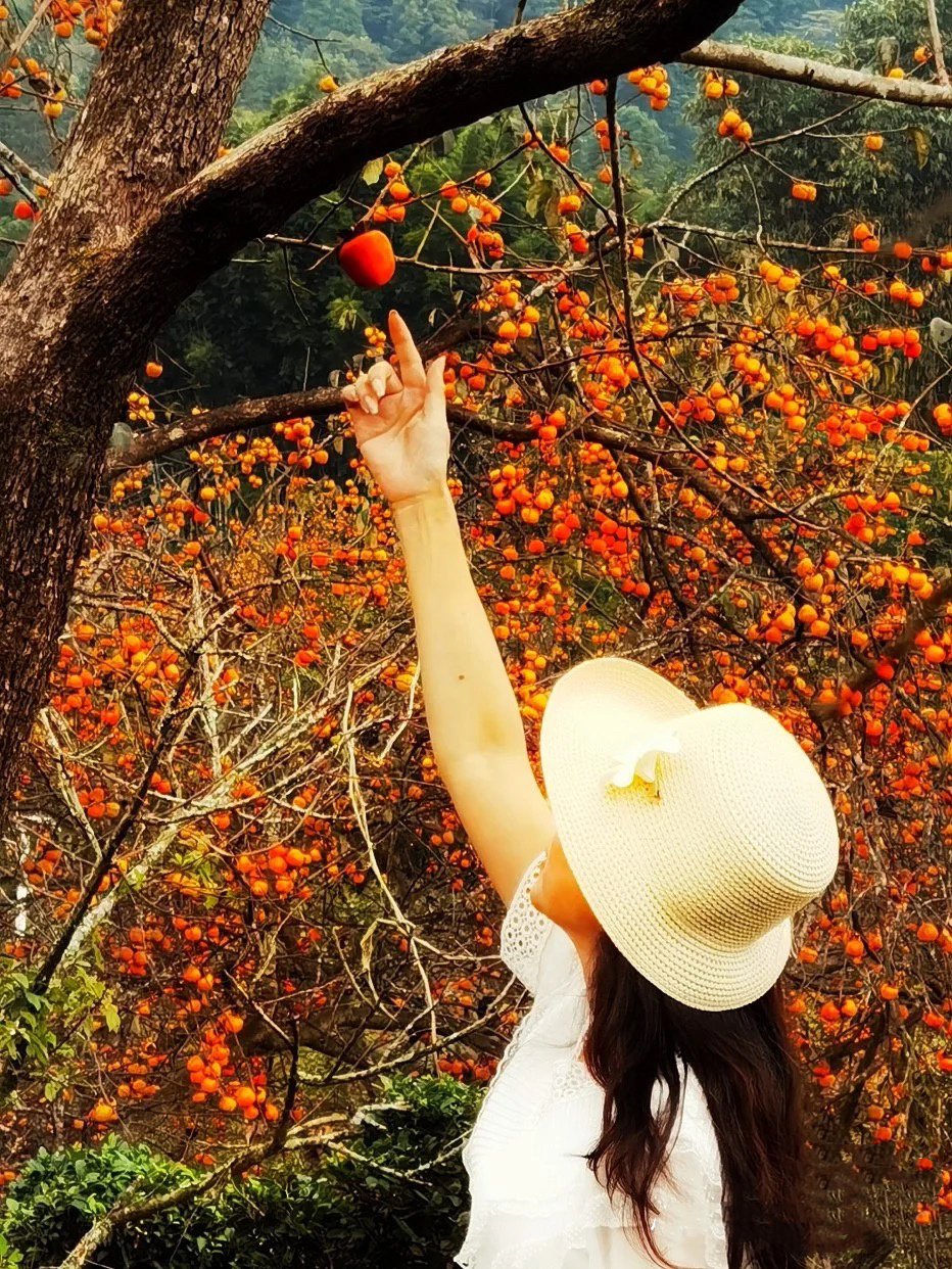 注:不想爬山的可以在果园自由拍照,300亩柿子里任由你拍摄,