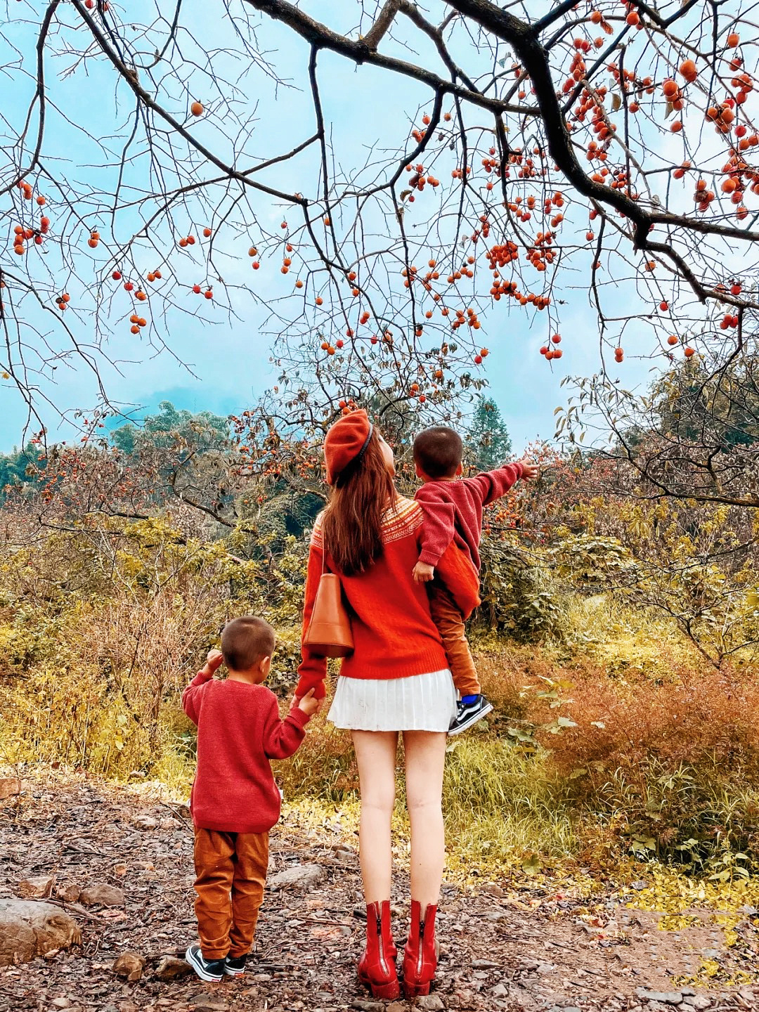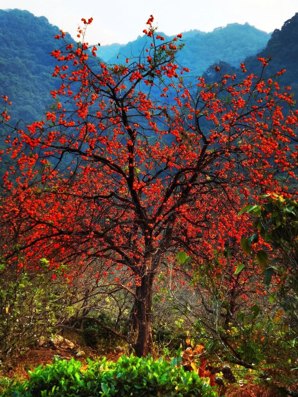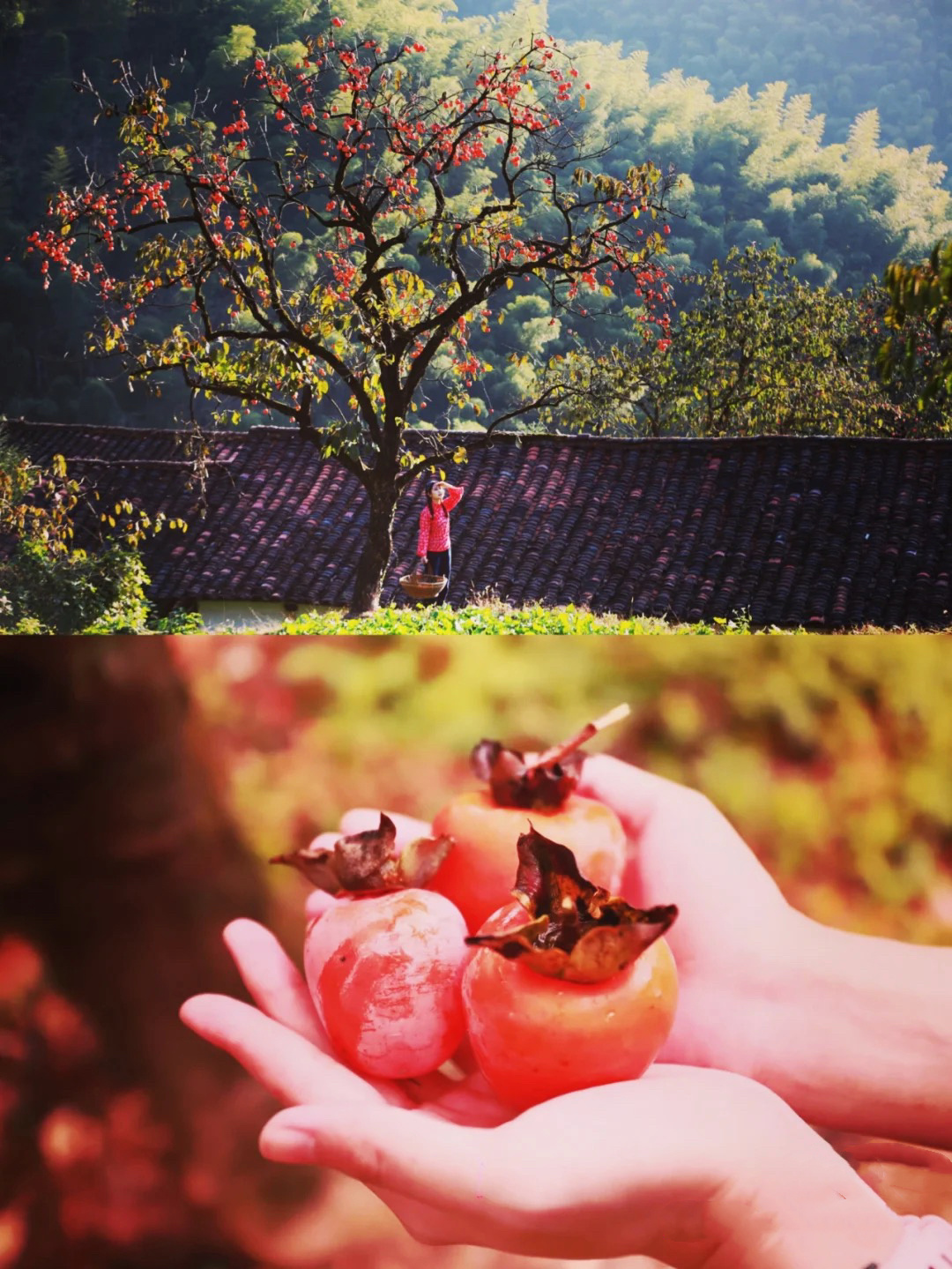 注:不想爬山的可以在果园自由拍照,300亩柿子里任由你拍摄,