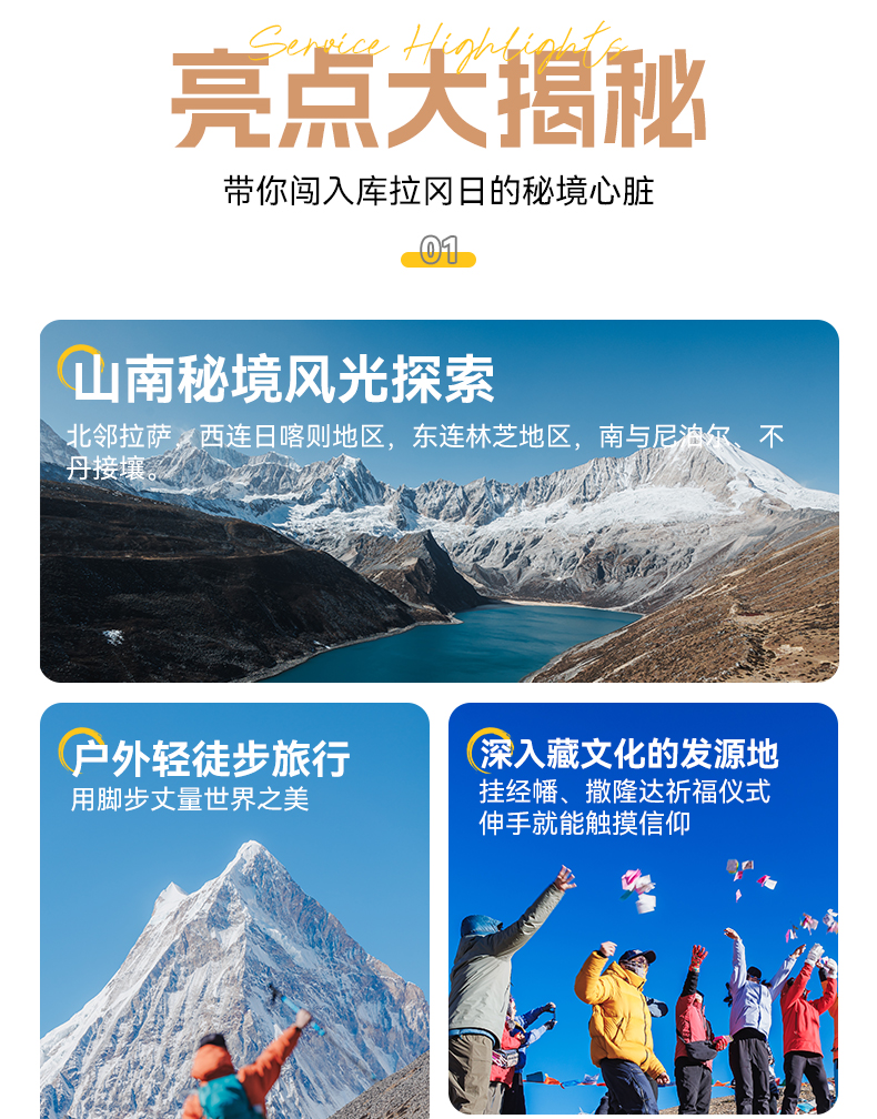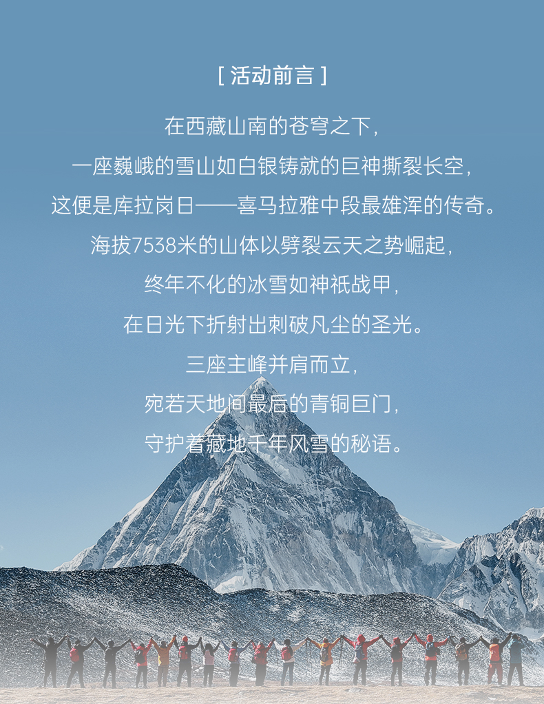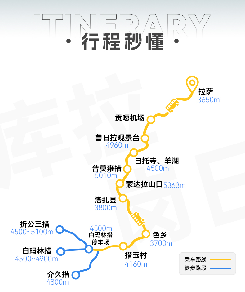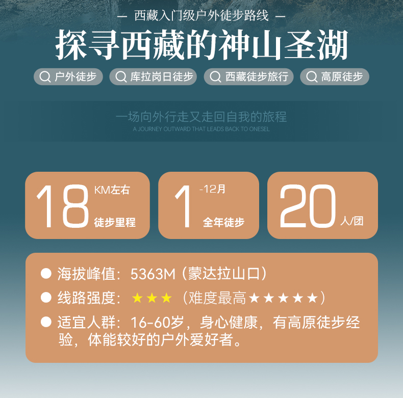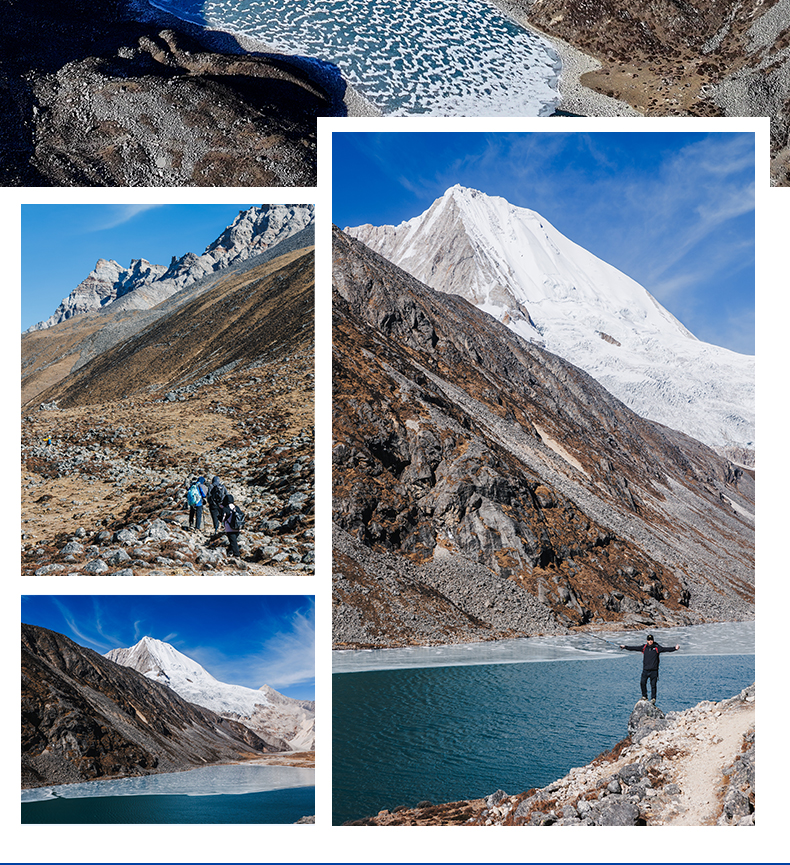 1.全程徒步约18公里,徒步平均海拔为4700米左右,徒步最高海拔为折公措垭口5000米左右,坐车最高海拔为蒙达拉山口5363米,住宿最高海拔为洛扎4000米左右。2.一月属于冬季,天气稳定,偶尔下雪,是看日照金山和星空最佳的时候,同时沿途的湖泊会结冰,也是看蓝冰的时候。