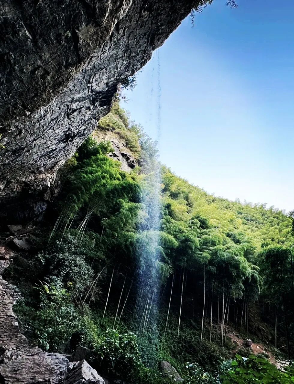 大石屋瀑布:天然穹窿形石屋,可容纳百人,前有百米高瀑布飞流直下,气势磅礴,相传太平军曾在此驻军。水滴石穿奇观:溪水常年冲刷岩石形成的自然景观,搭配竹林峡谷,意境幽深。