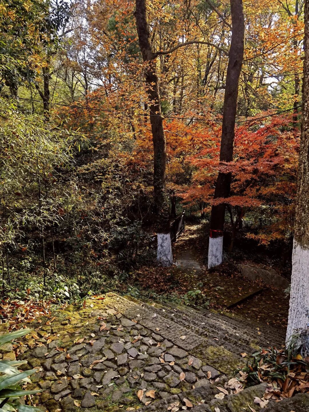 沿途有一段伴着溪流的小径,可以体验竹林间踏水而行的野趣,然后一路经过剑池、芦花荡公园、裸心堡。到了秋天,山上的枫树、梧桐、银杏等纷纷变色,从山脚到山顶,色彩层层递进。