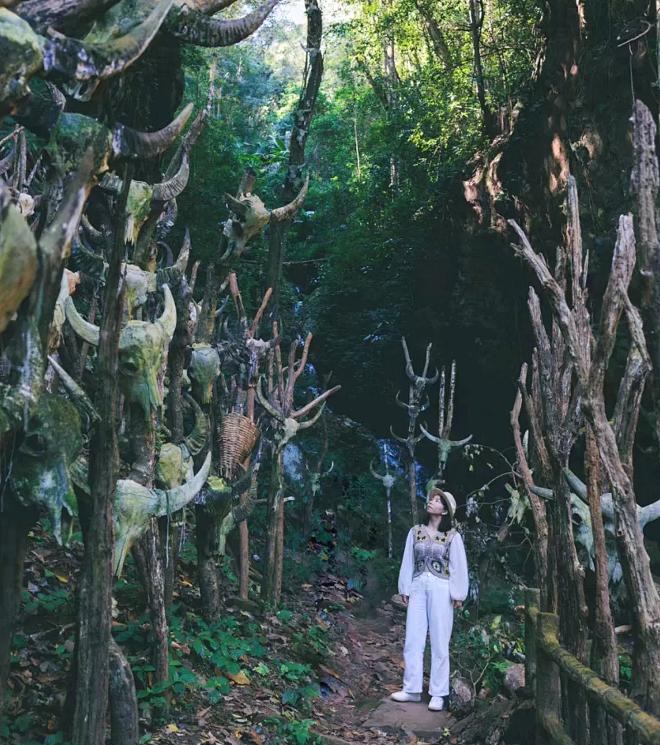 之后一起沿着美丽的【勐梭龙潭】走走,途中经过挂满牛头的【龙摩爷圣地】——真实的云南虫谷拍摄地,村民在阿佤山上的佤族信奉万物有灵的自然崇拜,走入龙摩爷,庄严肃穆、千姿百态,极具视觉冲击力和心灵震撼力的牛头,在这里感受原始崇拜的力量。