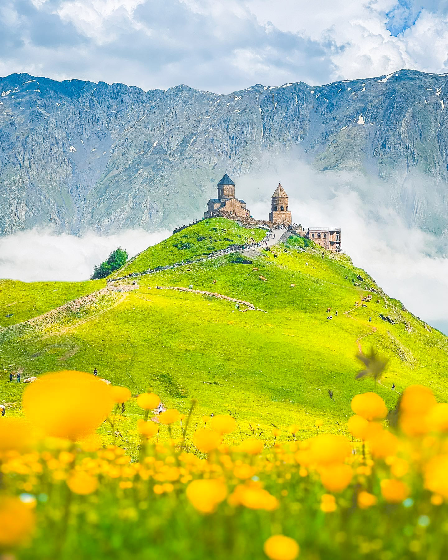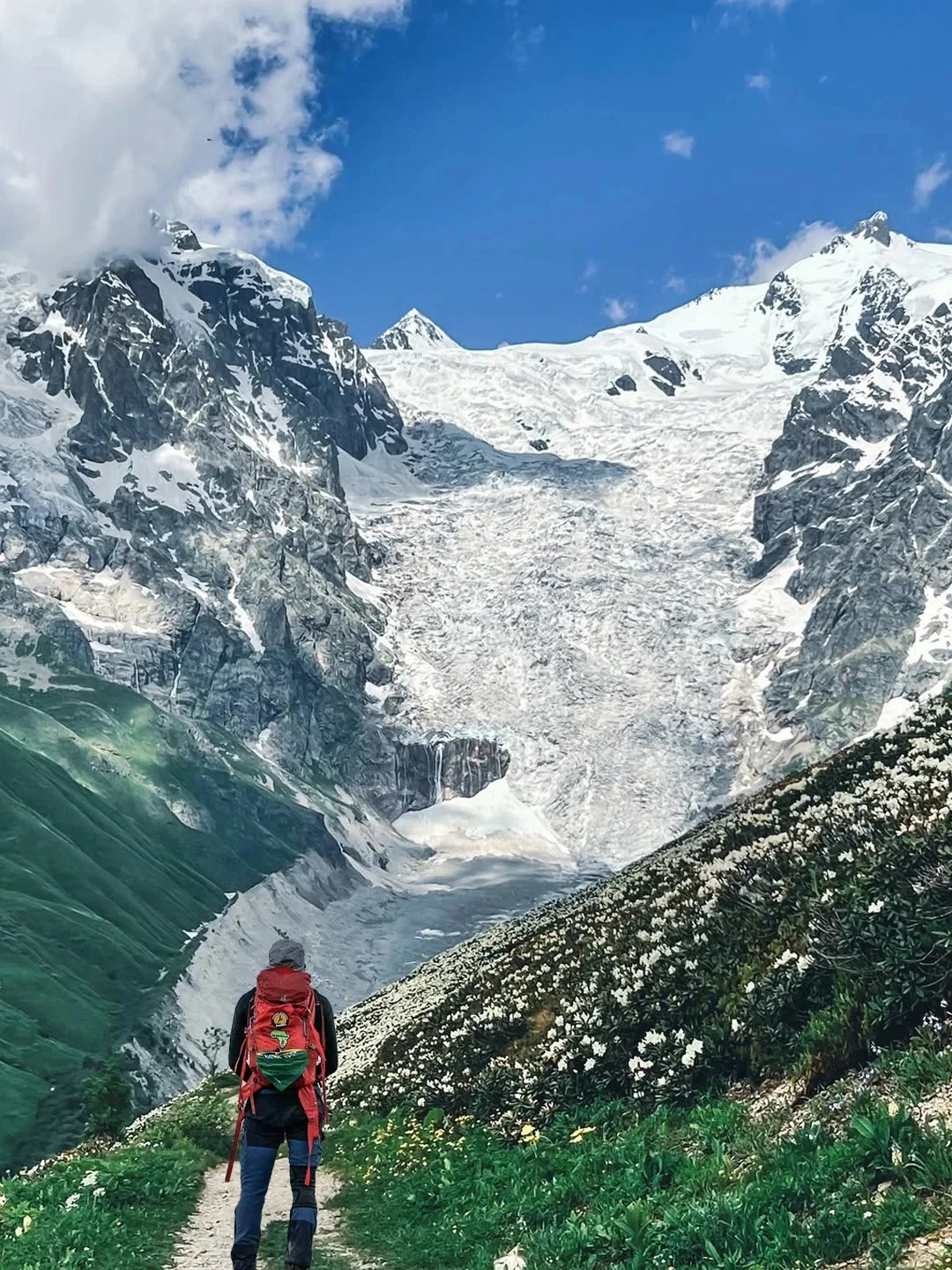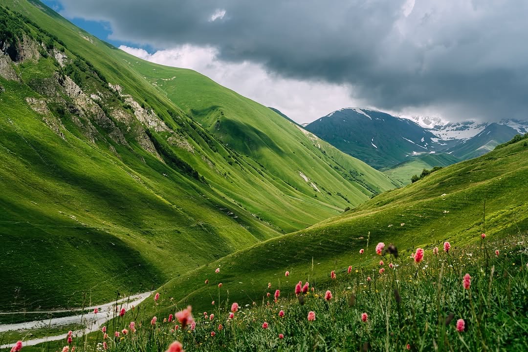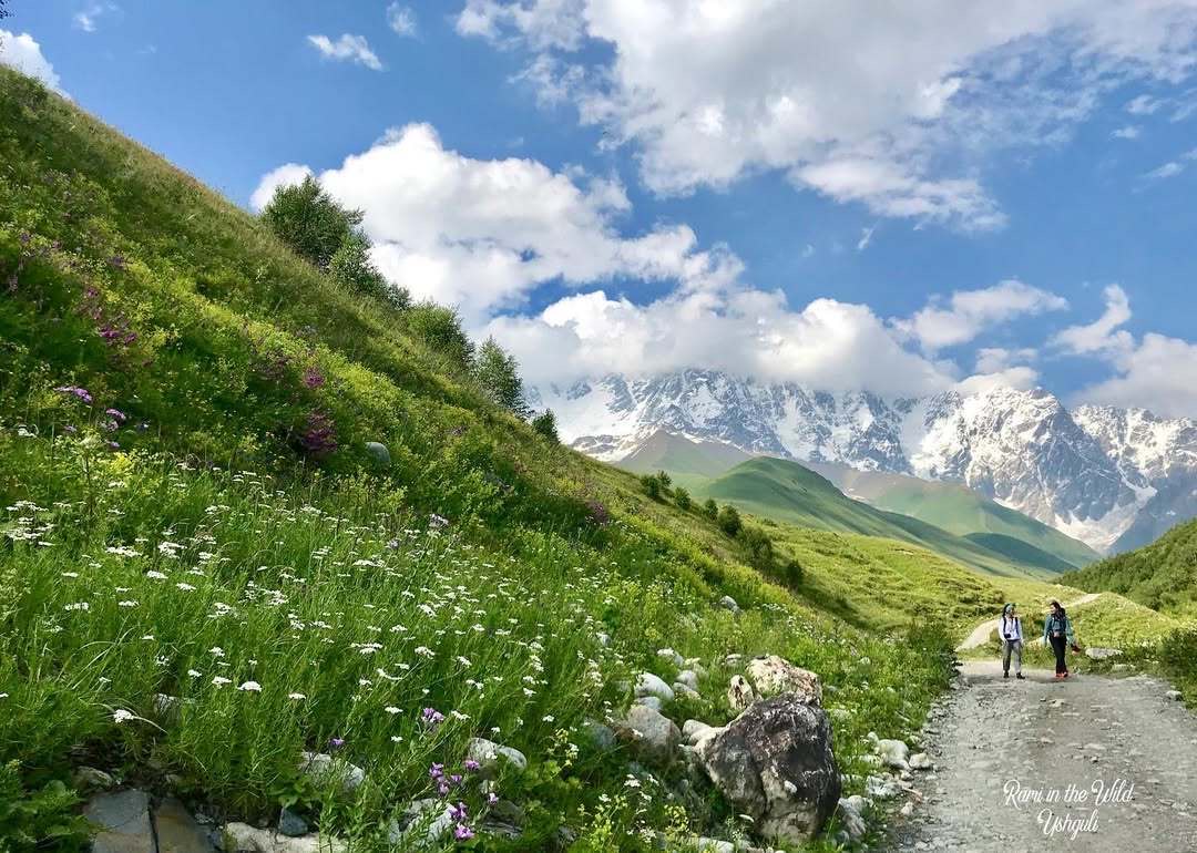 鲁吉亚,天生就是给徒步者准备的,从梅斯蒂亚到乌树故里,沿着雪山的肩膀前行,白天看冰川融化 ,晚上听风穿过木屋缝隙;穿过喀兹别克山谷,牧草铺成的路像绿丝带,牵着你走进千年教堂