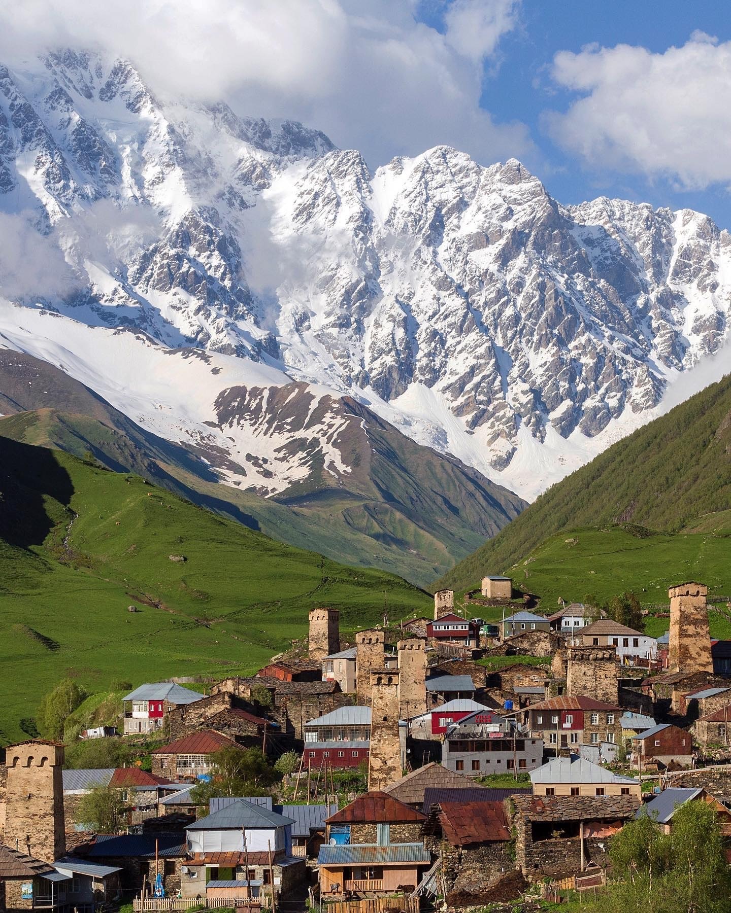 从伊普拉里启程,踏上通往乌树故里的13公里徒步旅程,约5-6小时轻松步行,感受高加索山区最迷人的一段风景。677米的攀升与436米的下降交替起伏,沿途穿越苍翠草甸、原始森林,山风徐徐、空气清新纯净。抵达海拔2000米的乌树故里,这座欧洲最高的古老村落,仿佛穿越千年而来:高塔耸立,古屋错落,冰川与雪峰环绕其间,静谧而神秘。漫步村中,时光仿佛停驻,尽享纯净与宁静。