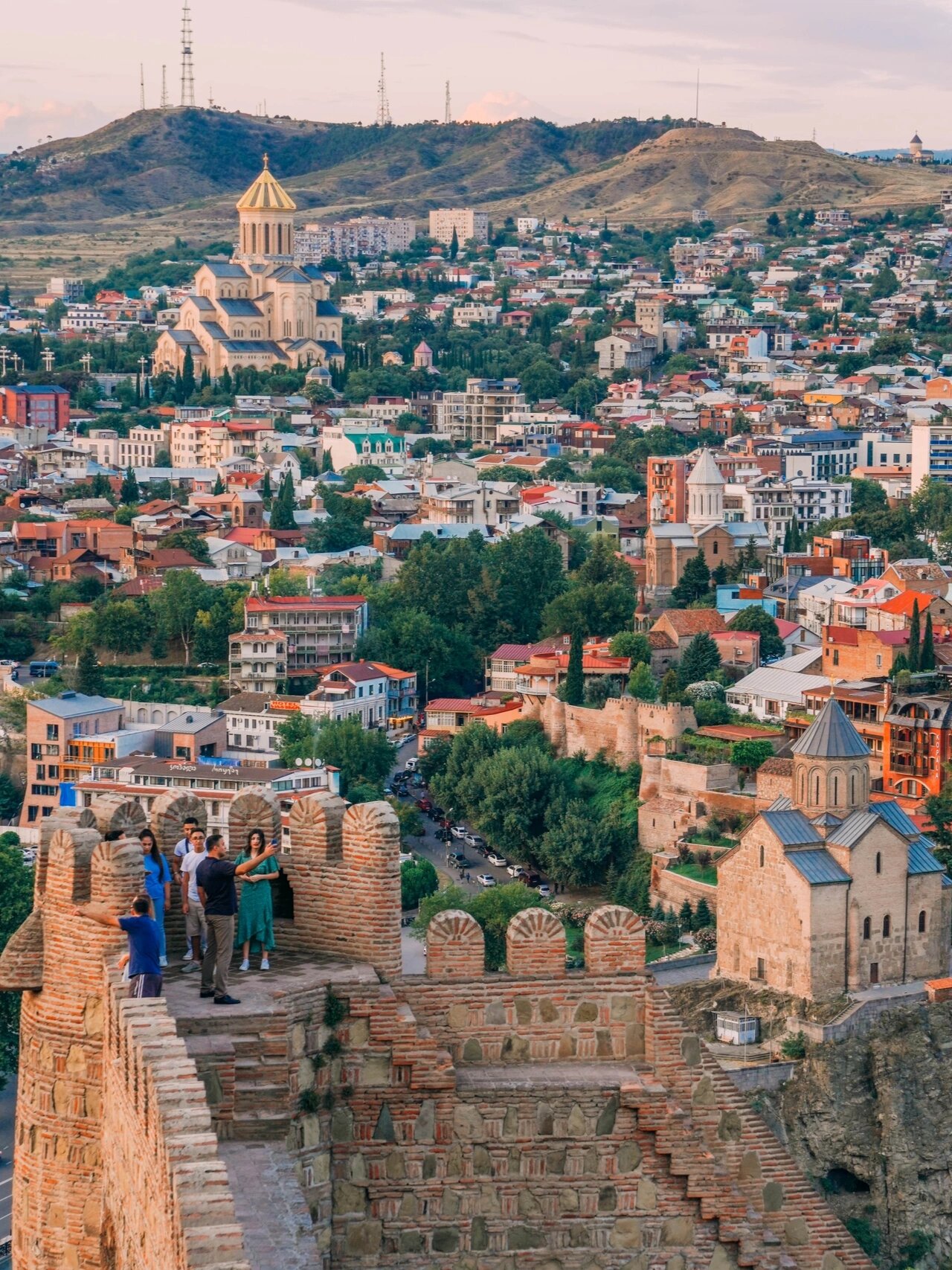 随后乘坐【第比利斯索道】缓缓升空,饱览第比利斯老城区的古典与现代融合之美。抵达山顶后,来到母亲堡垒,欣赏恢弘的城堡遗址,感受城市历史与岁月沉淀的魅力;放眼望去,古老教堂屋顶与现代建筑交相辉映,格外迷人。
