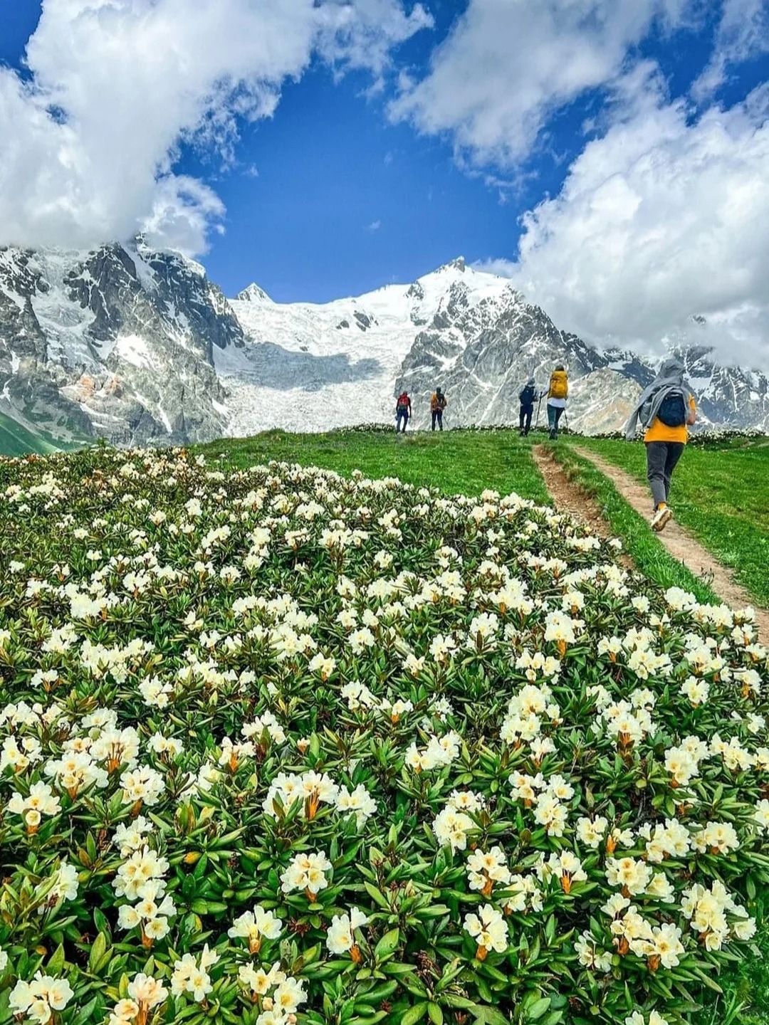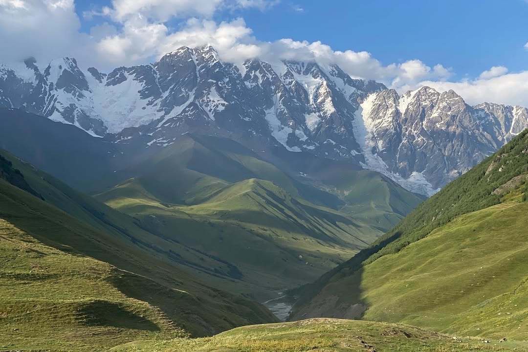 从阿迪什出发,踏上19公里的高加索山地之旅,前往伊普拉里。历时8-9小时,挑战860米上升与1069米下降的起伏步道。徒步途中,冰川悬挂山间,溪水奔流而下,野花如织,仿佛置身仙境之中。穿越草甸与古树林,远眺高耸入云的雪峰,抵达纯朴迷人的伊普拉里村,感受当地村民热情的笑容与斯瓦涅季传统生活气息。一路风景如画,体验自然与人文融合的壮丽