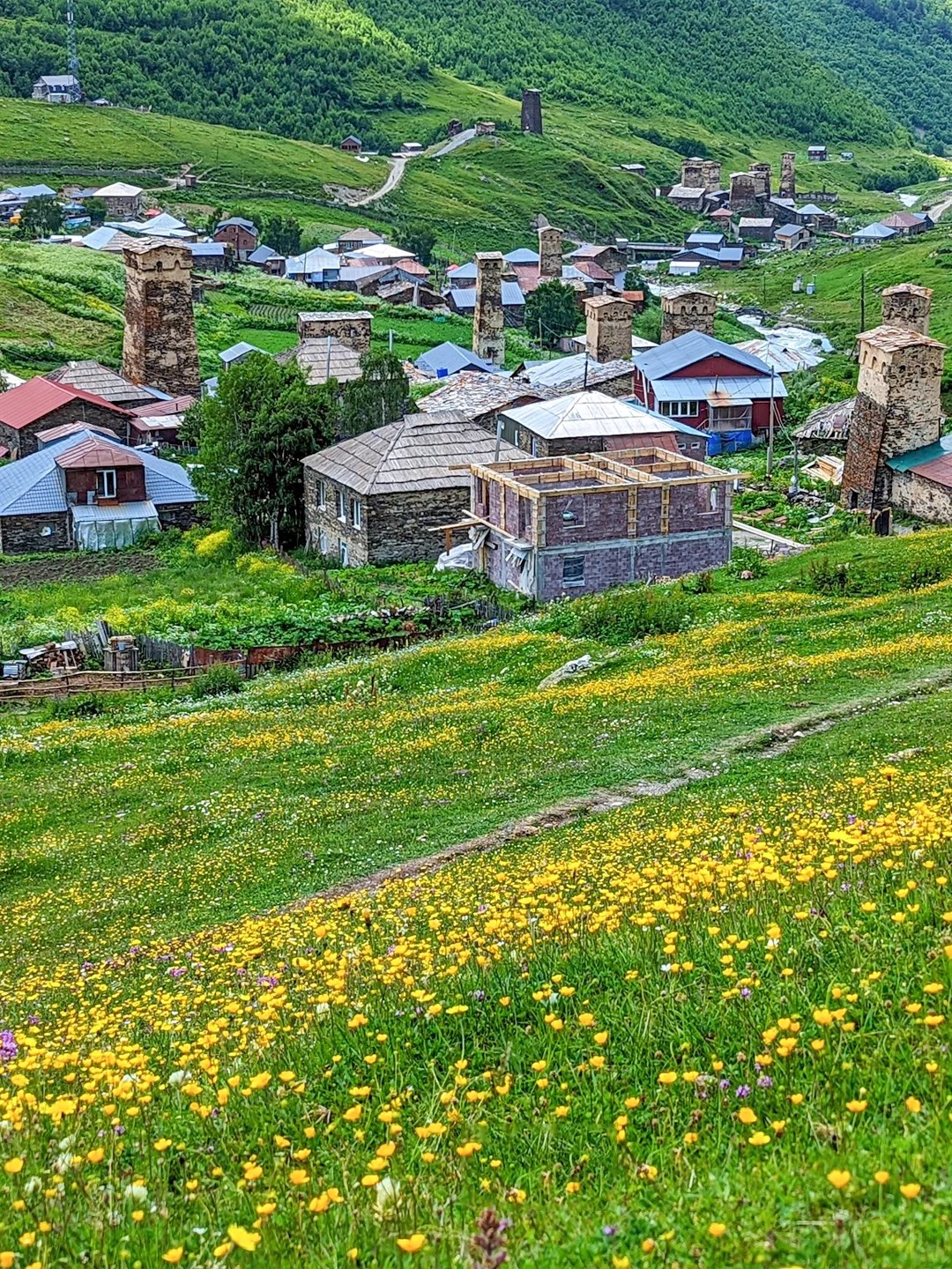 从扎别什出发,踏上前往阿迪什的梦幻之路,徒步11公里,时长约5小时。一路海拔持续攀升至1680米,909米起伏的上坡与527米的下降让步伐更富趣味与挑战。沿途雪山高耸、溪流潺潺,阿尔卑斯般的草甸与野花美景映入眼帘。抵达阿迪什村,这座静谧的古老村落,藏于山谷深处,仿佛时光停滞,古朴的石屋与中世纪碉楼交织,令人心生向往。在徒步中,感受自然与历史交织的浪漫。