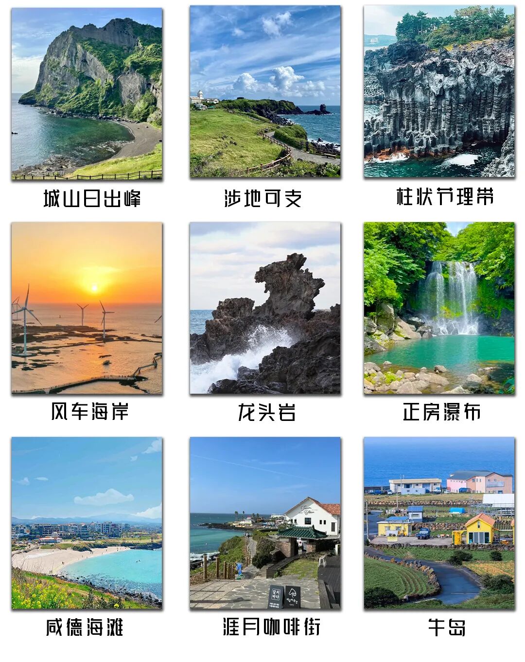 5.景点门票及特色活动:济州民俗村,柱状节理带,正房瀑布,城山日出峰。