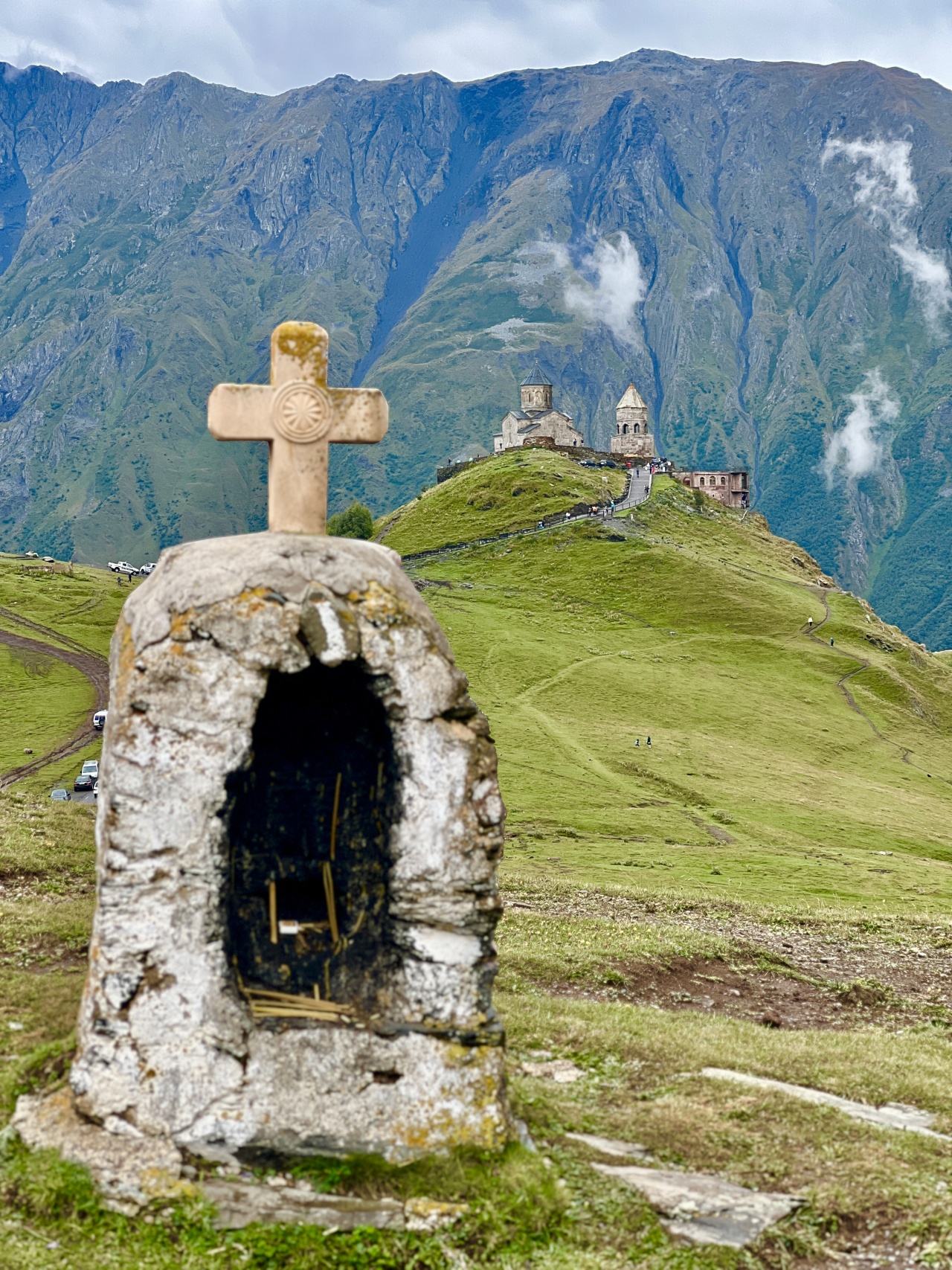 教堂始建于14世纪,位于格鲁吉亚斯特潘茨明达镇的崇山峻岭间。由于远离尘嚣,古城的一些重要遗迹、物件(包括圣尼诺十字架等)曾于战乱时期保存在此。苏联时期,曾被政府确定为高加索地区的自然保护区。 驻足山顶,可俯瞰卡兹别克的雪山与村庄,景色绝美,因此曾荣登《孤独星球》封面。