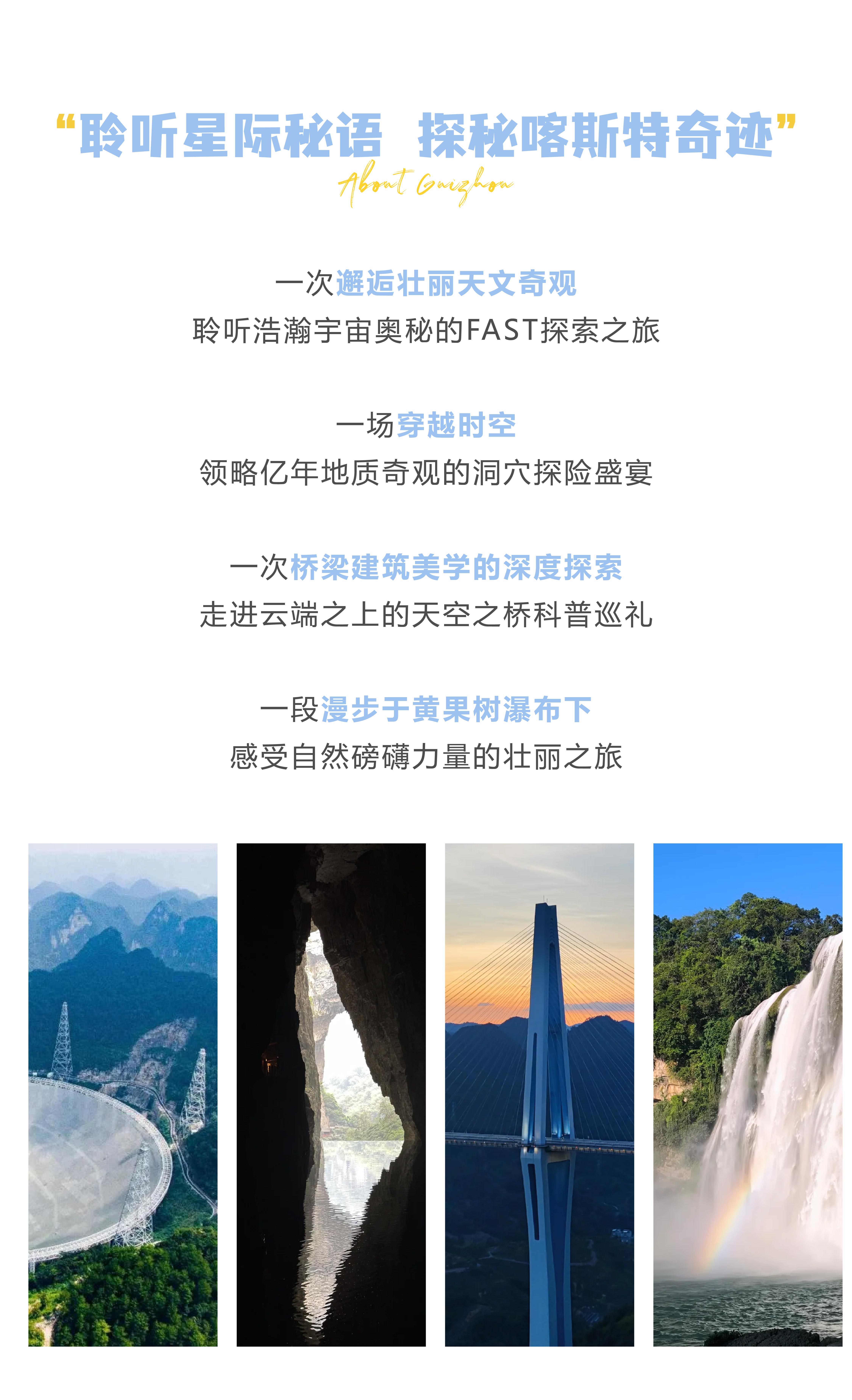 早餐后我们前往【中国天眼(FAST)】,位于贵州省黔南布依族苗族自治州,是世界最大单口径射电望远镜。这座耗资巨大的科学奇迹,不仅是中国天文学和制造业的骄傲,也是全人类探索宇宙的重要工具。孩子们将乘坐摆渡车穿越山林,再徒步攀登至观景台,俯瞰这个地球上“看得最远的地方”。尽管不能携带电子设备,但现场提供的付费卡片机将记录下这难忘的瞬间。此外,五个围绕FAST的场馆也将带给孩子们全方位的天文体验,包括通过特定设备“听到宇宙的声音”,感受脉冲星的神秘脉动。