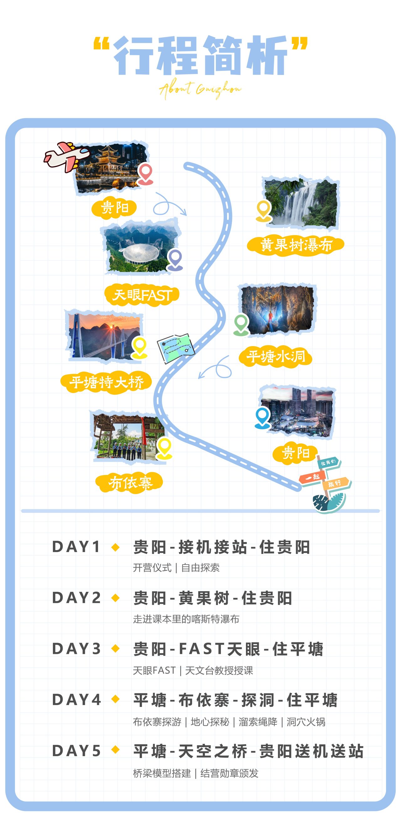 所有优惠证件需在报名时提前告知,本行程以课程及体验为主,退费内容仅为黄果树门票(享受免票人群可退120/人)。