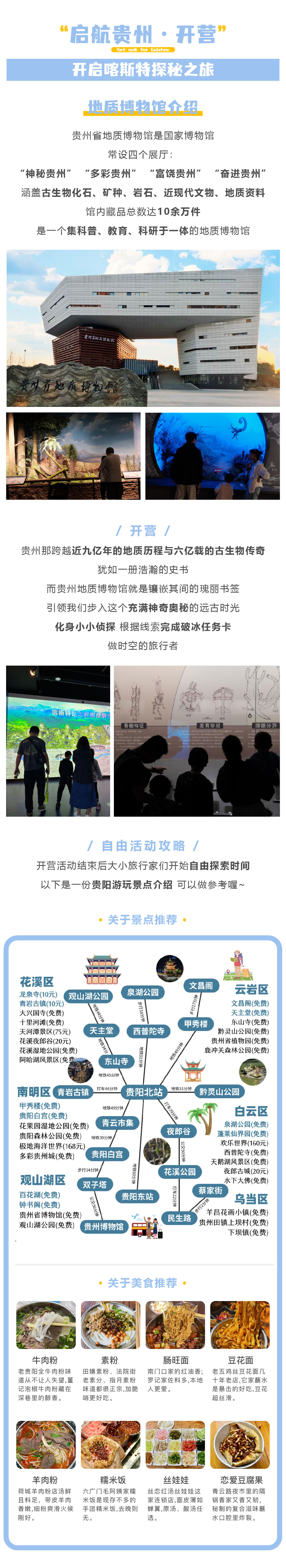 【开营仪式】设置在荣获鲁班奖贵州新地标【贵州省地质博物馆】,它的外观设计独具匠心,贵州地质博物馆的主题,也展示了贵州丰富的地质资源和独特的自然景观。一同穿越时空,寻找三叠纪恐龙生活的踪迹,同时领略贵州乃至地球的地质变迁与自然奇观。在这里亲身体验地质科学的魅力,与恐龙模型亲密互动,让学习变得生动有趣。