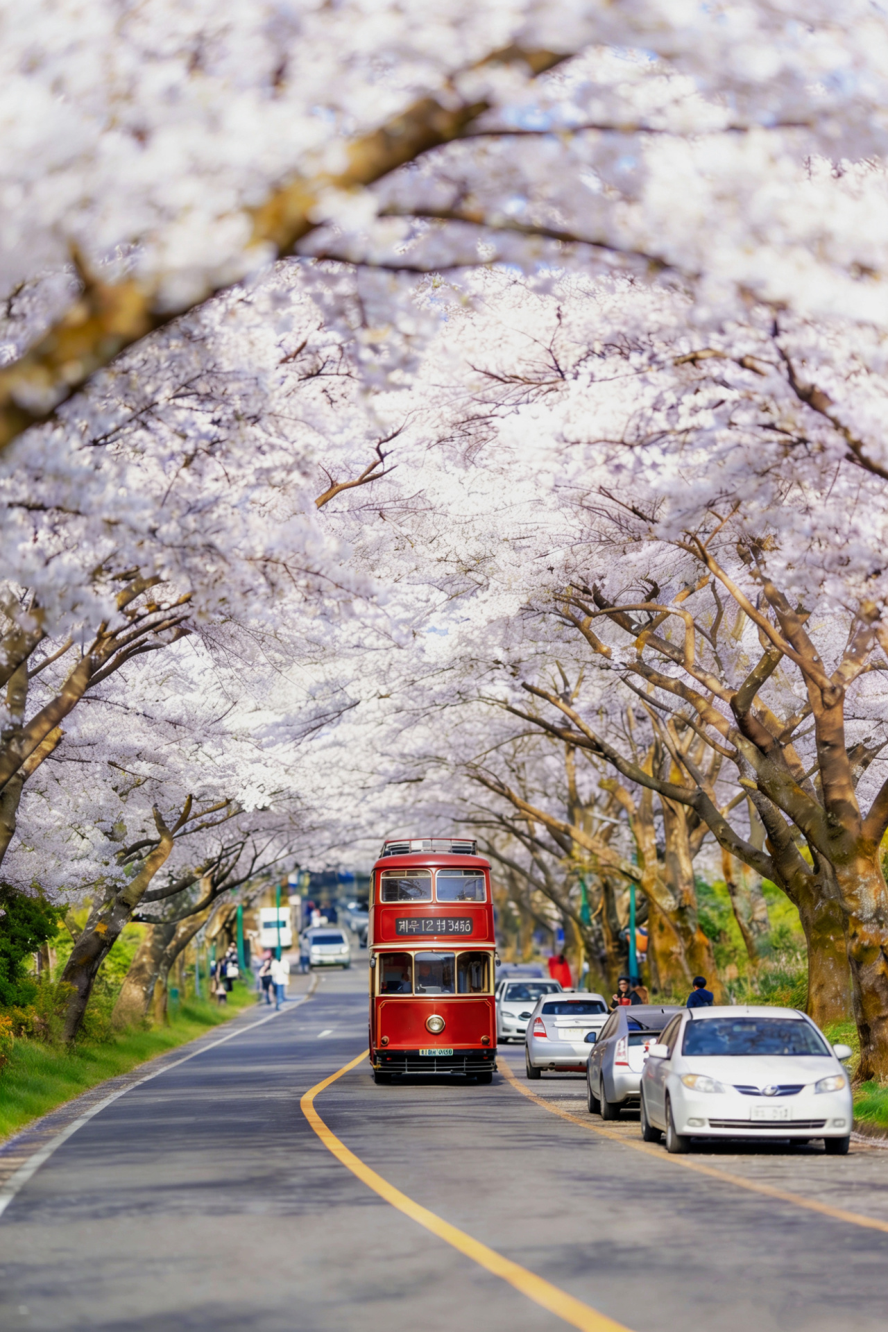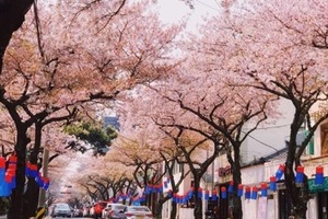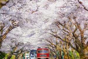 典农路樱花隧道:济州市区最热门的樱花商业街,白天可欣赏繁茂樱花。建议清晨前往以避开人流,街道两侧商店亦可逛。此处亦是济州樱花节举办地之一。
