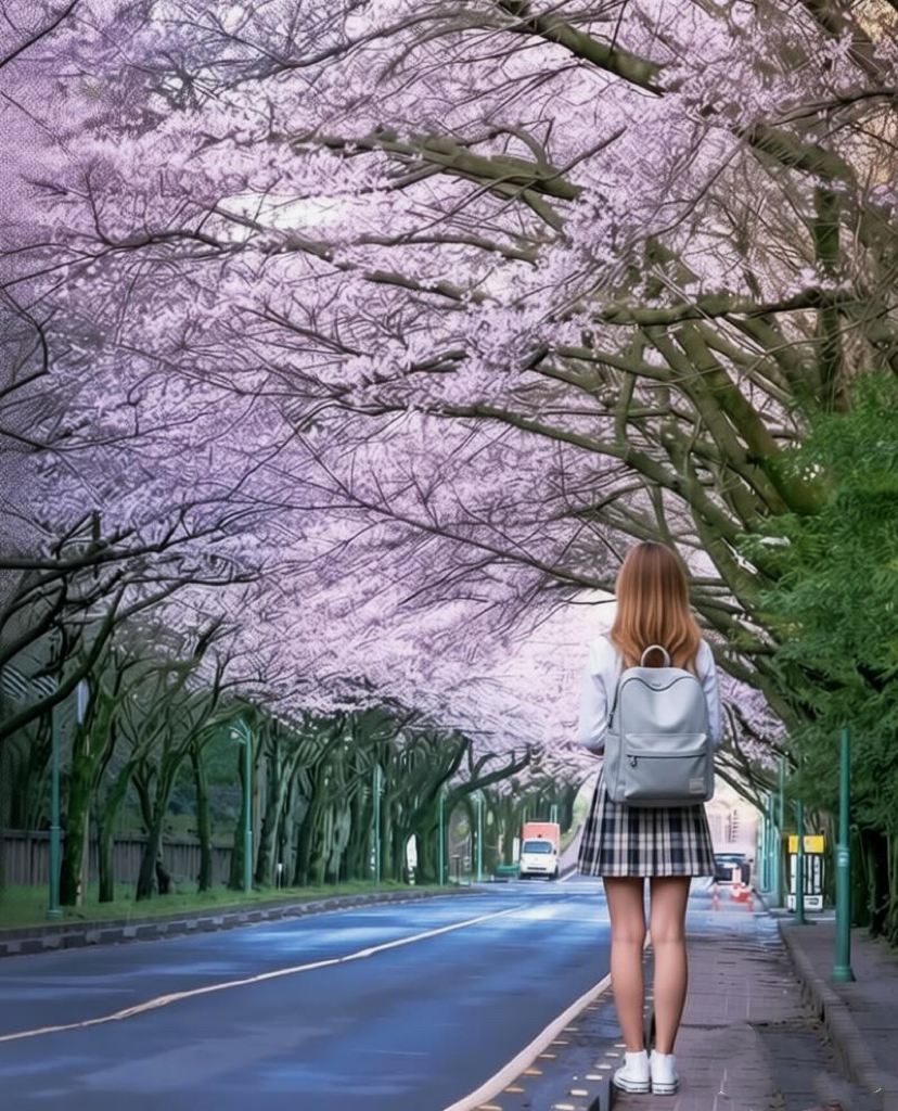 若想寻一处更为开阔的赏樱地,典农路是不二之选。这条被誉为“樱花隧道”的道路,漫步其中,抬头是繁花织就的穹顶,低头是落英铺陈的绒毯。偶有骑着单车的少年穿梭而过,衣角带起几片花瓣,在风中划出优美的弧线,像是电影里最动人的画面。
