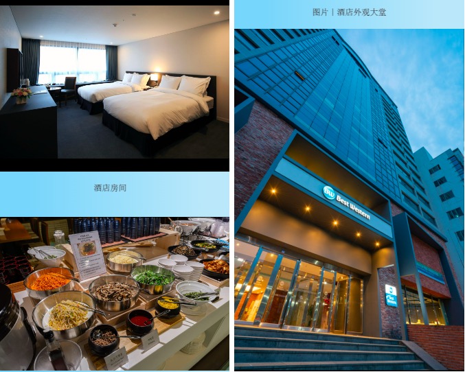 1、住宿:行程所示的所有住宿四晚济州岛市酒店(济州岛2晚,西归浦2晚)
