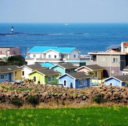 涉地可支【涉地岬】(섭지코지),是韩国济州岛东部海岸的著名景观,以悬崖草地、灯塔、烽燧台及油菜花田闻名。这里也是因韩剧《洛城生死恋》《蓝色生死恋》等取景而知名,保留剧中教堂场景,设有韩国首个电视剧博物馆“All in House”。