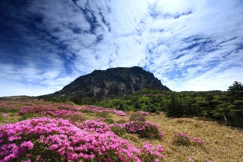 汉拿山位于韩半岛的最南端,是韩国第一高山。古时候因传言有神仙居住而被称为瀛州山,与金刚山、智异山一起被认为是韩国的三神山之一。汉拿山从现在开始到2万5千年前为止一直进行火山喷发活动,山上根据海拔高度分布着1800余种高山植物,充分展现了济州岛火山岛的特性,汉拿山周围分布着368个寄生火山“火山丘”,创造出独特的景观。