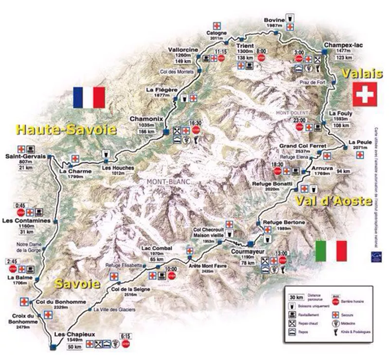 勃朗峰(Chamonix Mont-Blanc)是阿尔卑斯山脉最高峰,也是欧洲第一高峰,海拔4810米。法语意为“银白色山峰”。环勃朗峰徒步线路长106英里,穿越法意瑞三国边境。这是一条汇聚了原始自然风光、丰富文化遗产以及热情和梦想的线路!勃朗峰环线(TMB)是Tour du Mont Blanc的简称,这条线路被登山爱好者们一致认为是世界级的徒步线路。