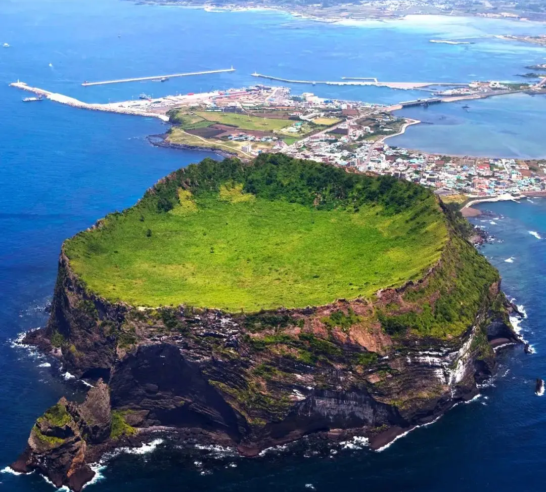 这里不仅有火山喷发造就的奇异地貌,更有绝美日出等你来邂逅!当晨曦初现,金色光辉铺满山峦,震撼与浪漫交织成永恒记忆。城山日出峰,坐落于济州岛的东端,拔地而起,海拔182米。位于济州岛东端的城山日出峰,因海底火山喷发形成,拥有独特的岩石景观与广阔的牧场。