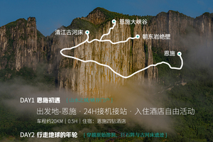 注:如果下大雨,徒步路线无法行走,则领队有权根据情况调整第2-4天行程顺序; 如考虑到安全原因,则有权调整为恩施景区,参考梭布垭石林景区。